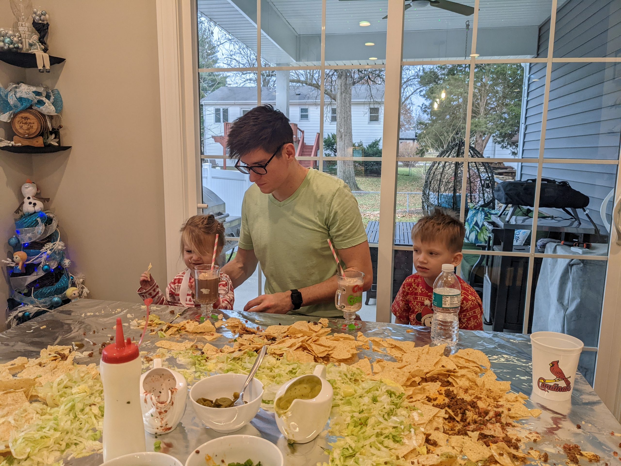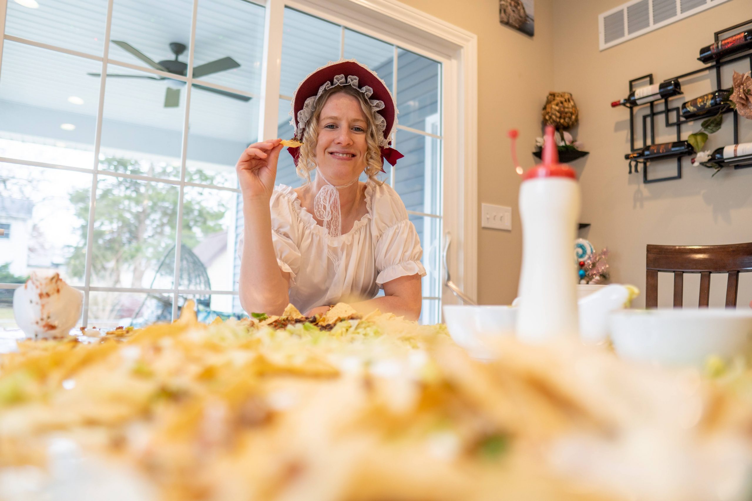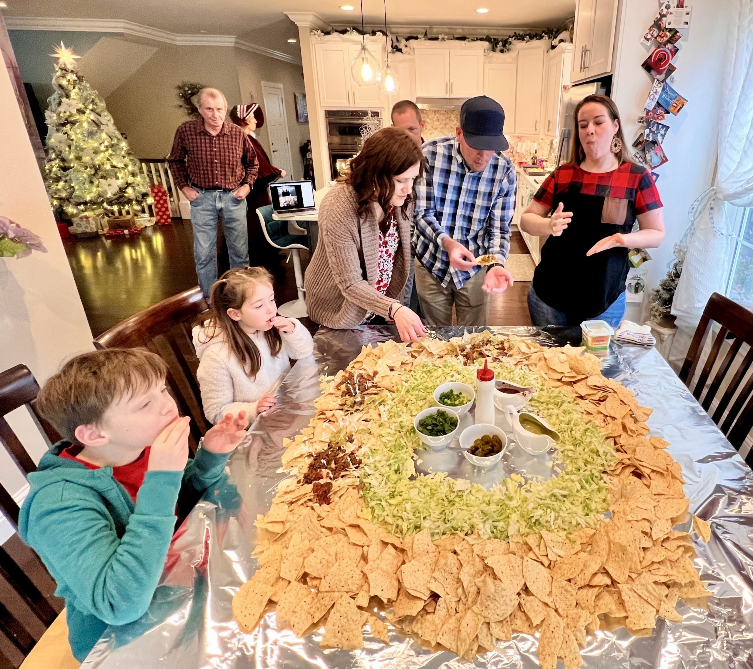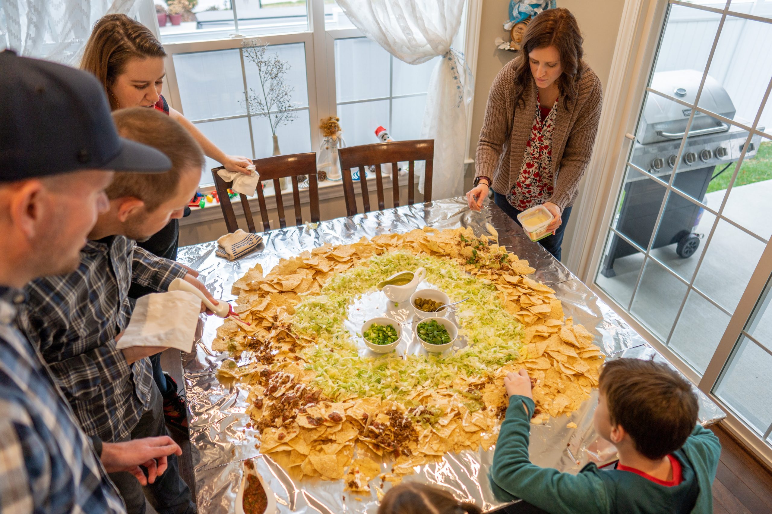 The “present” food served was inspired by current TikTok trends. The table nachos, as an appetizer, were a big hit! We included all the fixings including beans, smoked shredded chicken, smoked pulled pork, beef, queso, homemade salsa, sour cream, avocado sauce, cilantro, lettuce, green onions, and jalapeños.
