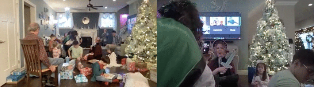 We took inspiration from A Christmas Carol, “I will honour Christmas in my heart, and try to keep it all the year. I will live in the Past, the Present, and the Future.” Scott’s dad is a Charles Dickens scholar so we had to make sure we did it justice. We had Christmas trees to represent the past, present, and future. For our gift exchange, we had family bring a meaningful white elephant present with blasts from the past, present trends (what’s trending on TikTok), or an innovative/homemade creation. We kept it cheap and silly, “There is nothing in the world so irresistibly contagious as laughter and good humour.”