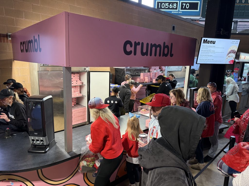 Crumbl cookies were added in 2025. They offer four varieties: classic peanut butter, chocolate cake batter, milk chocolate chip, and a special “Game Day” cookie – a sugar cookie topped with red and white swirled cream cheese icing and vanilla cookie crumbs. While Crumbl has become very popular, we’re not impressed. In our opinion, they ruined the classic chocolate chip cookie by using milk chocolate instead of semi-sweet or dark. While brick-and-mortar Crumbl cookies have a lot of options and serve their cookies warm and gooey, the in-stadium location’s cookies were cold and dense. We’d recommend getting your sugar fix elsewhere.