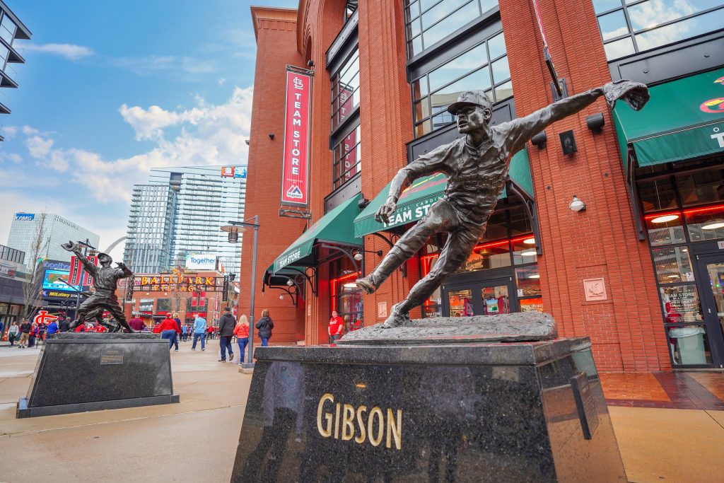 At the corner of Clark and 8th Street, near the Team Store, you’ll find a series of smaller statues honoring Cardinals Hall of Famers – Bob Gibson, Enos Slaughter, Dizzy Dean, Rogers Hornsby, Red Schoendienst, Lou Brock, Ozzie Smith, Cool Papa Bell, George Sisler, and a smaller version of Stan Musial. While their statues haven’t been added yet, fans are eagerly hoping that Yadier Molina, Adam Wainwright, and Albert Pujols will be next to join this legendary lineup.