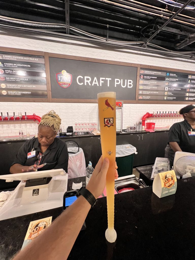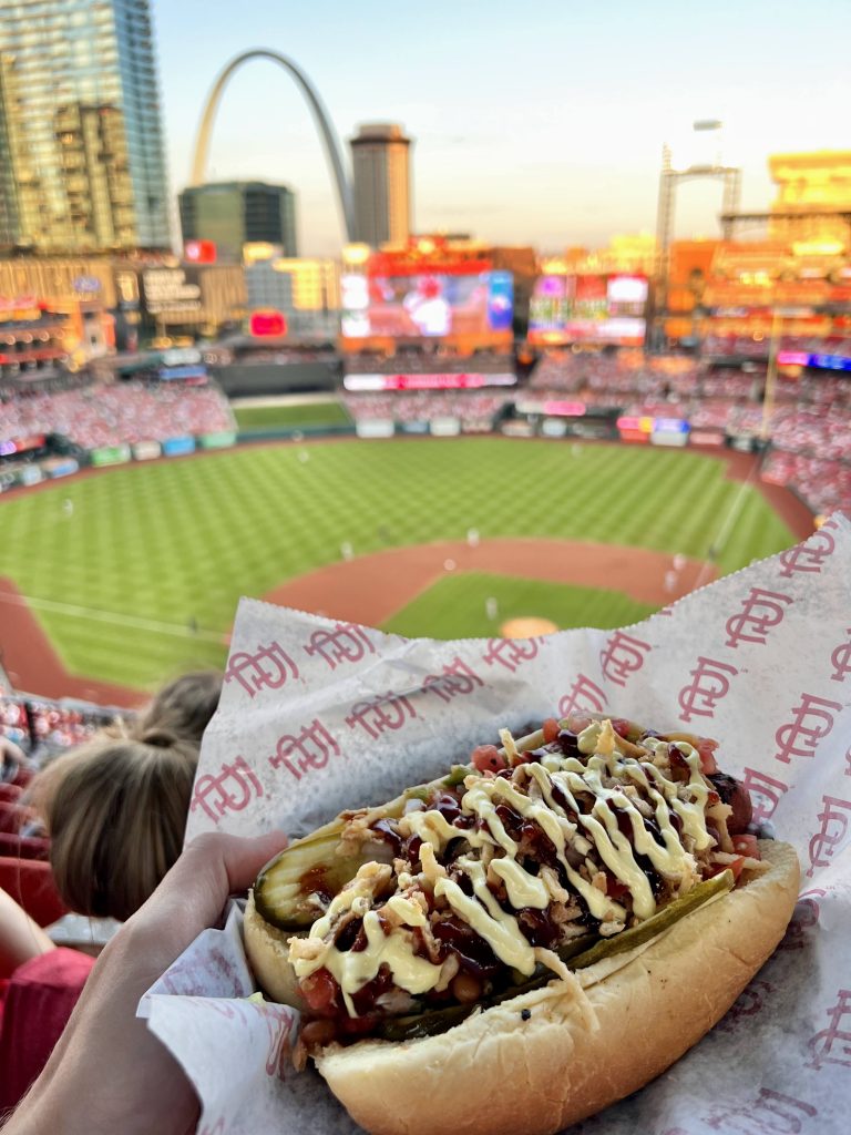 We were thrilled to see that Busch now offers beer bats, a favorite souvenir from our visit to Globe Life Field. You can grab one at the 1764 Craft Pub for ~$27, which is actually a steal considering we’d seen the bats alone priced at $30 online. We’ve gotten ones with commemorative Yadi and playoff designs, which made them even cooler. We filled it with a Zwickel from local favorite Urban Chestnut, and let’s just say–everyone around us in the stands was jealous. Other popular local breweries include Schlafly, 4 Hands, Civil Life, 2nd Shift, Mother’s, and Perennial.