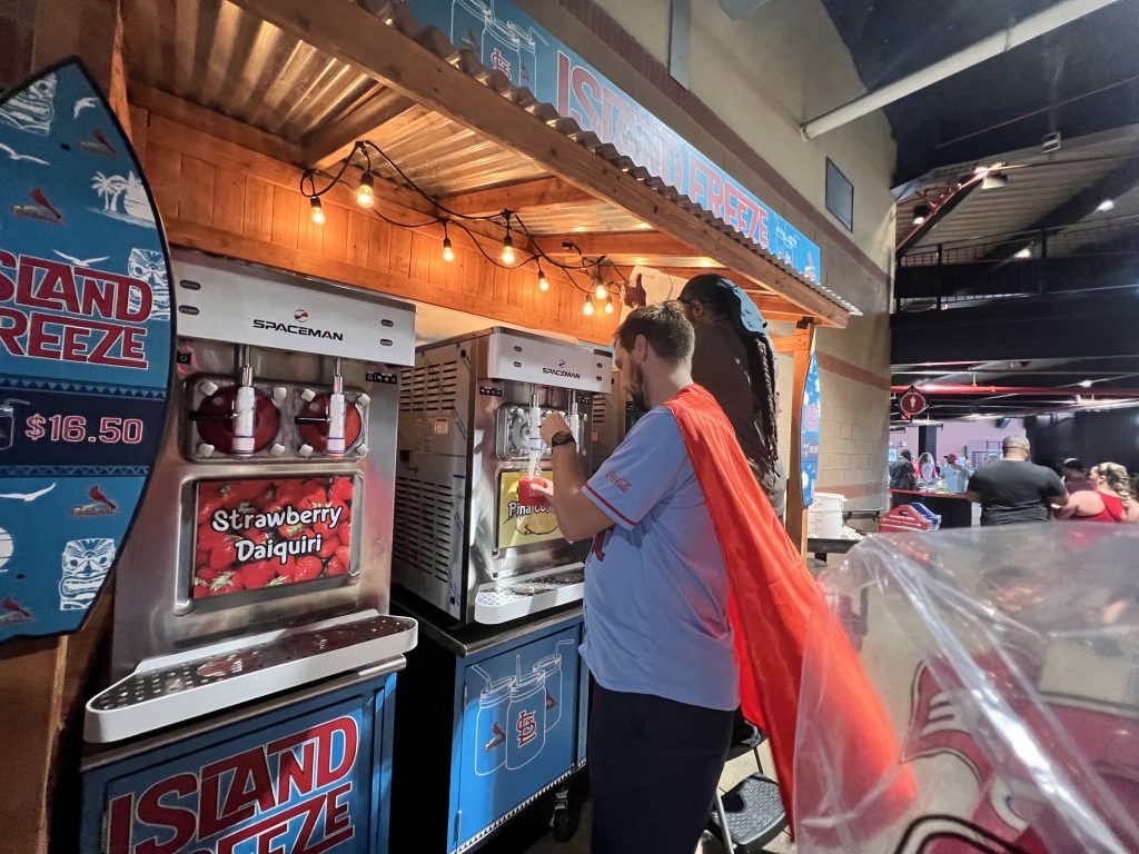 Busch also has several margarita stands throughout the stadium. Like Island Freeze, these are pre-mixed, but we thought they tasted less artificial and were a decent mid-game option–nothing extraordinary, but enjoyable enough if you’re in the mood for a cocktail. New for 2025, fans can get $6 margaritas all game long for night games at the Crown Bar in the Budweiser Terrace.