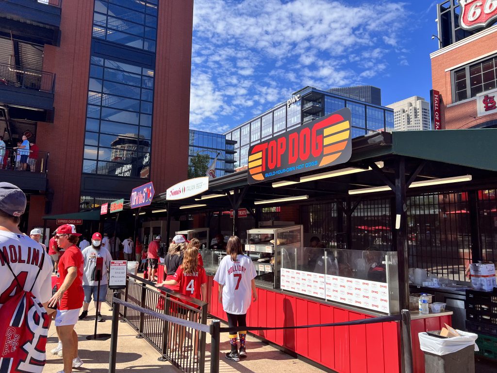 Busch has embraced the social ballpark trend by adding numerous other standing and mingling areas throughout the stadium. One of our favorites is the 1764 Craft Pub, located near first base on the main concourse. Named for the year St. Louis was founded, this spot is known for serving the popular beer bats. There are plenty of high-top tables, making it a great place to hang out.