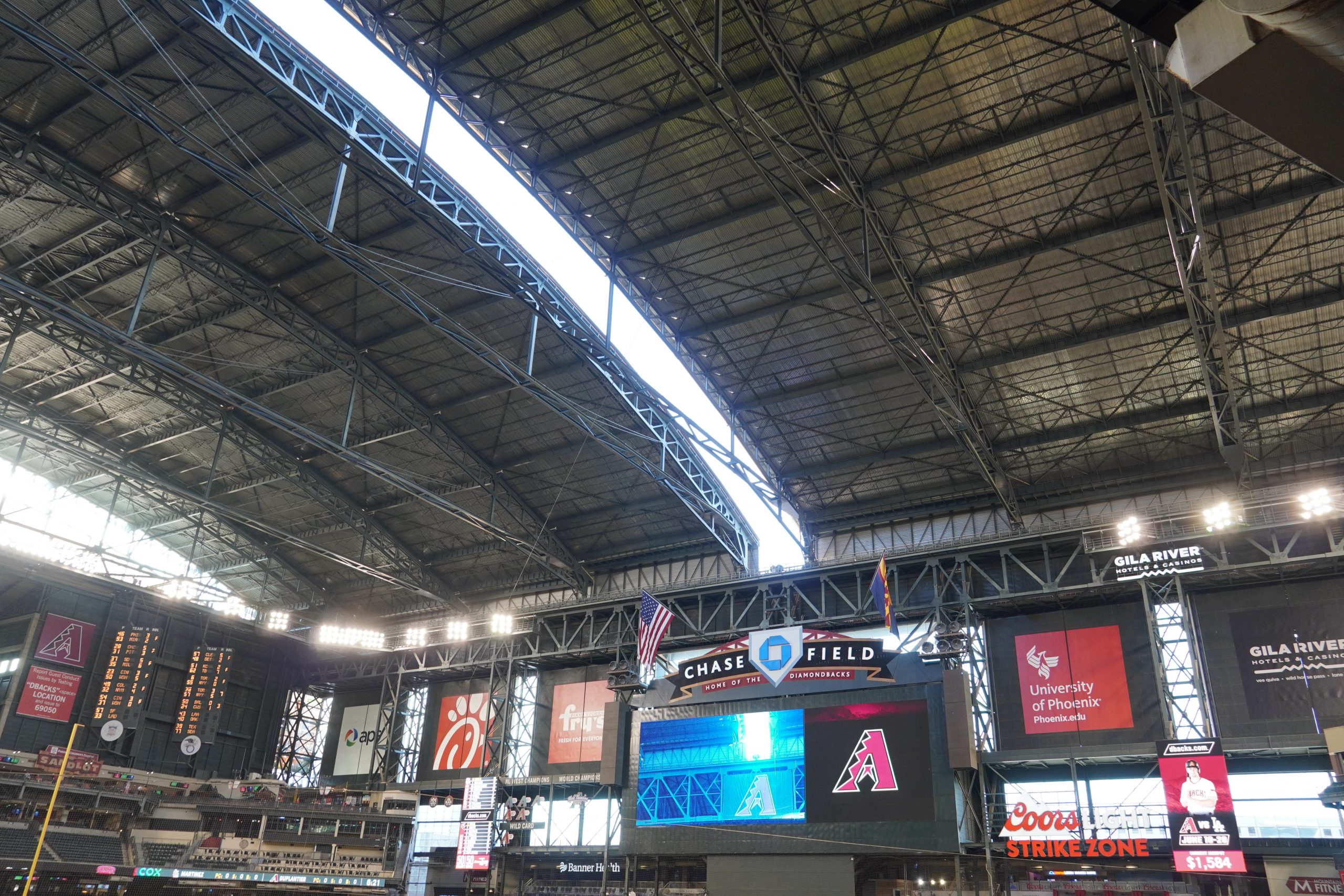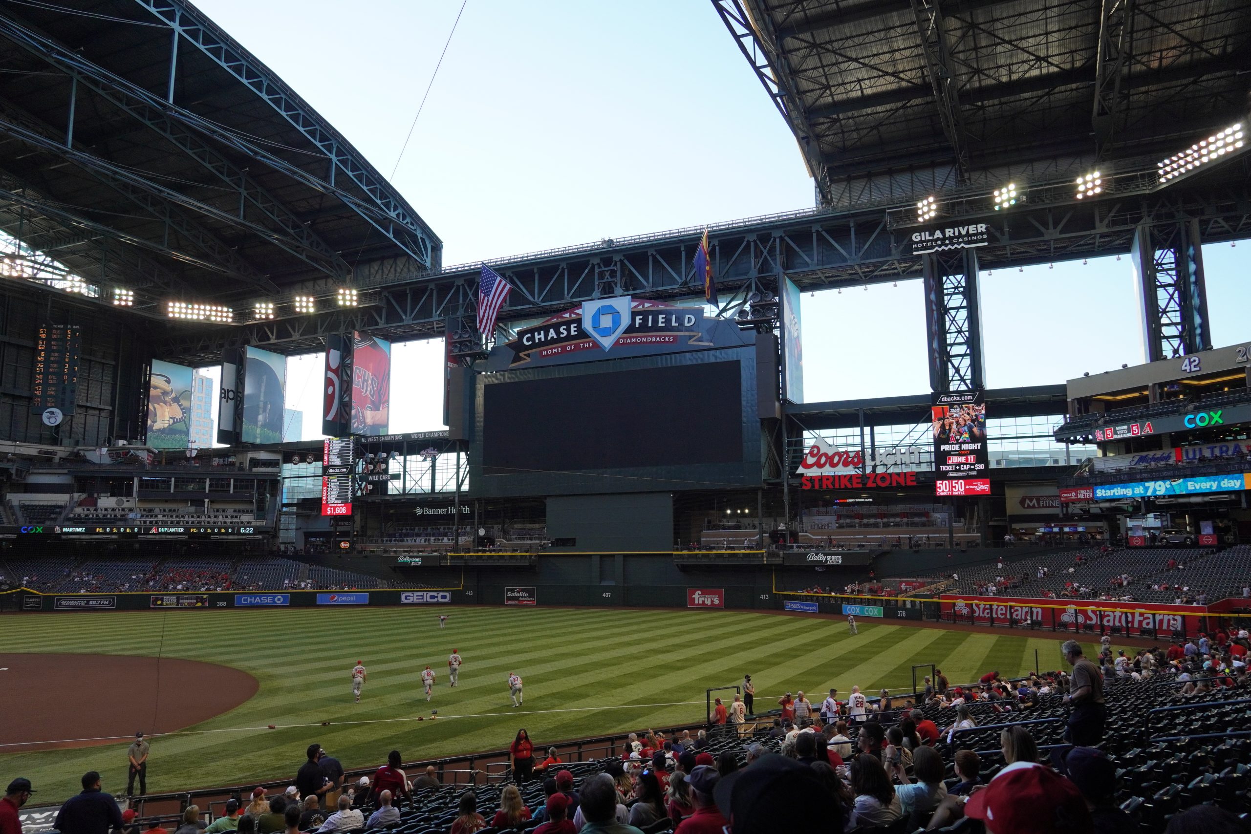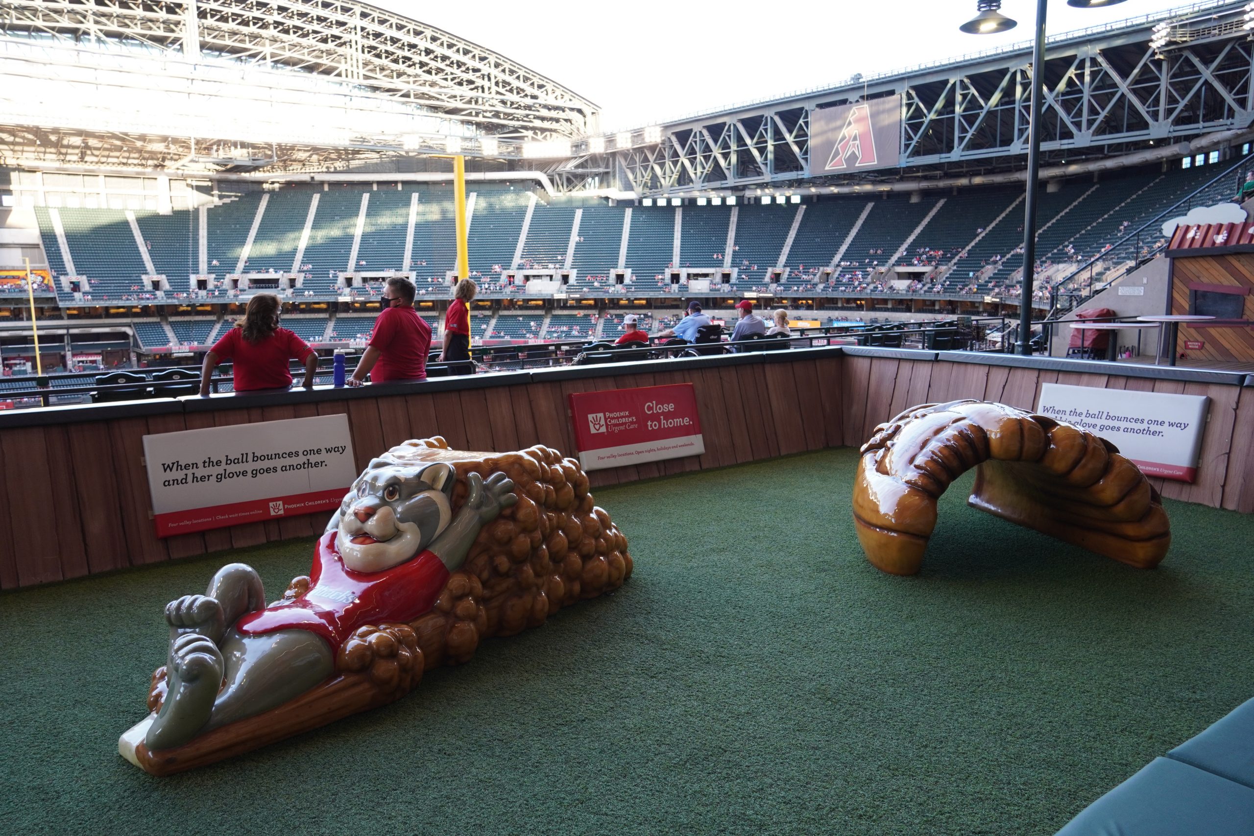 With the roof open, a few skyscrapers from the Phoenix skyline are visible beyond left field, though the view is modest and best appreciated from the upper decks – they’re barely noticeable from the lower level. The skyline itself isn’t particularly expansive, so there’s not a ton to take in.