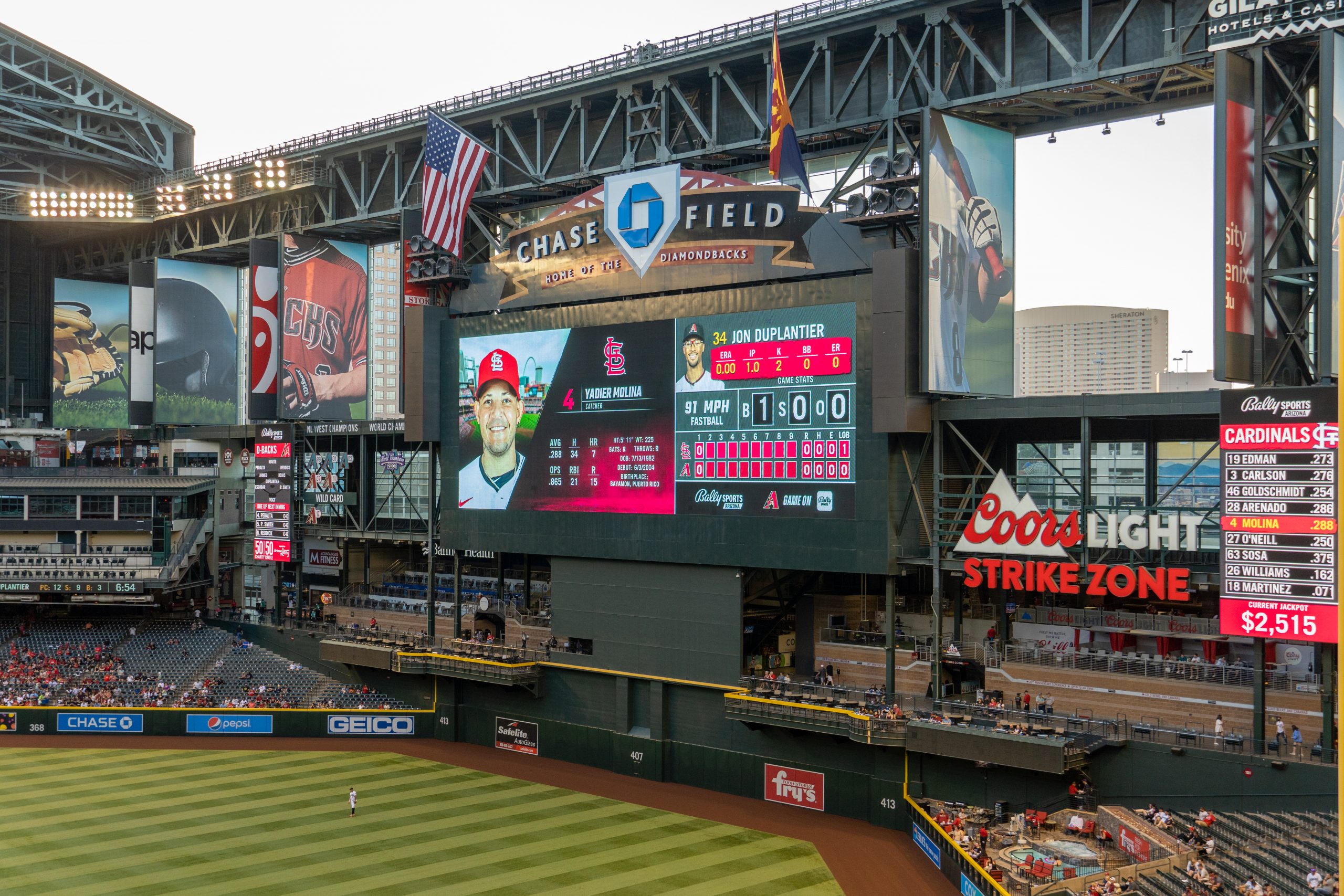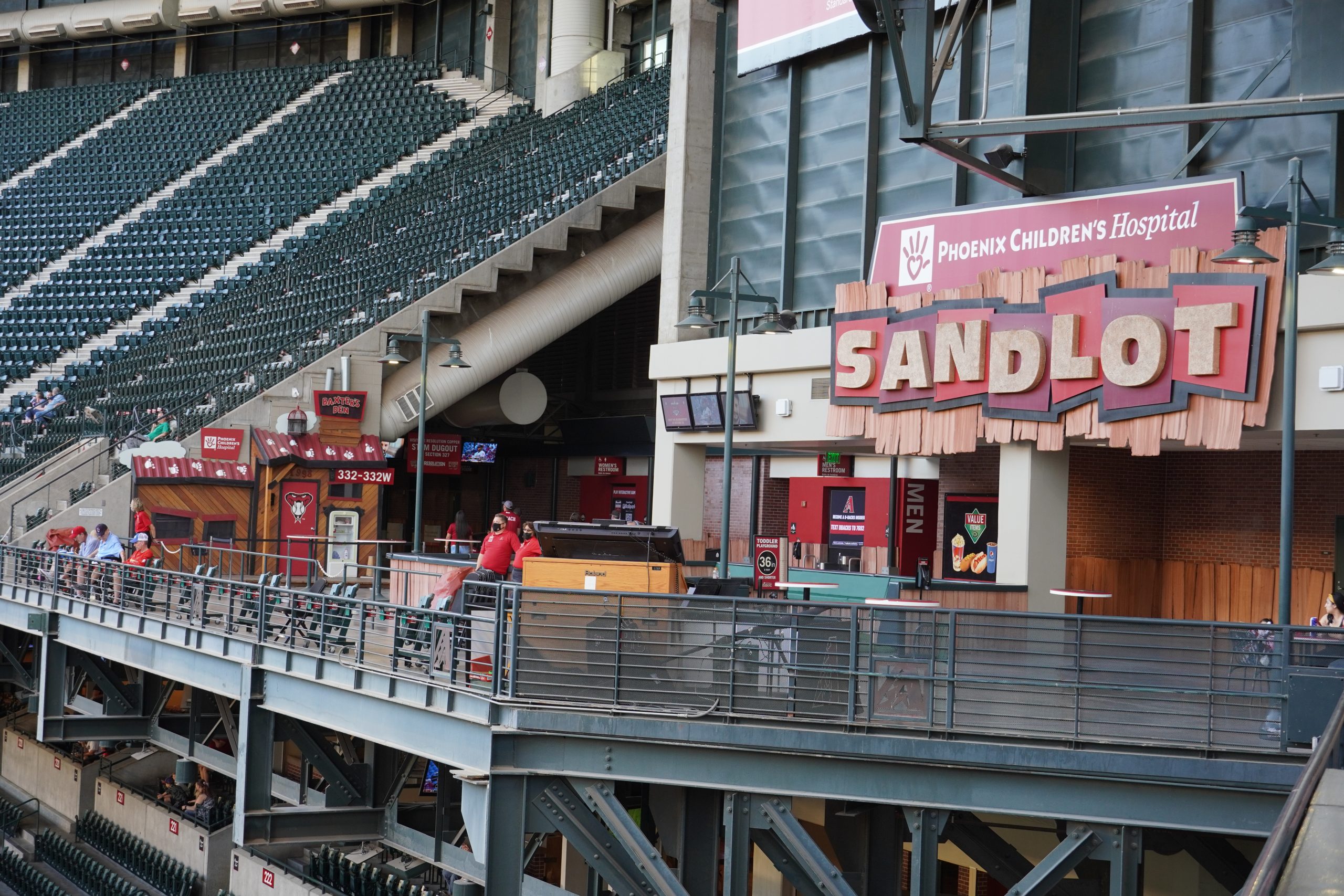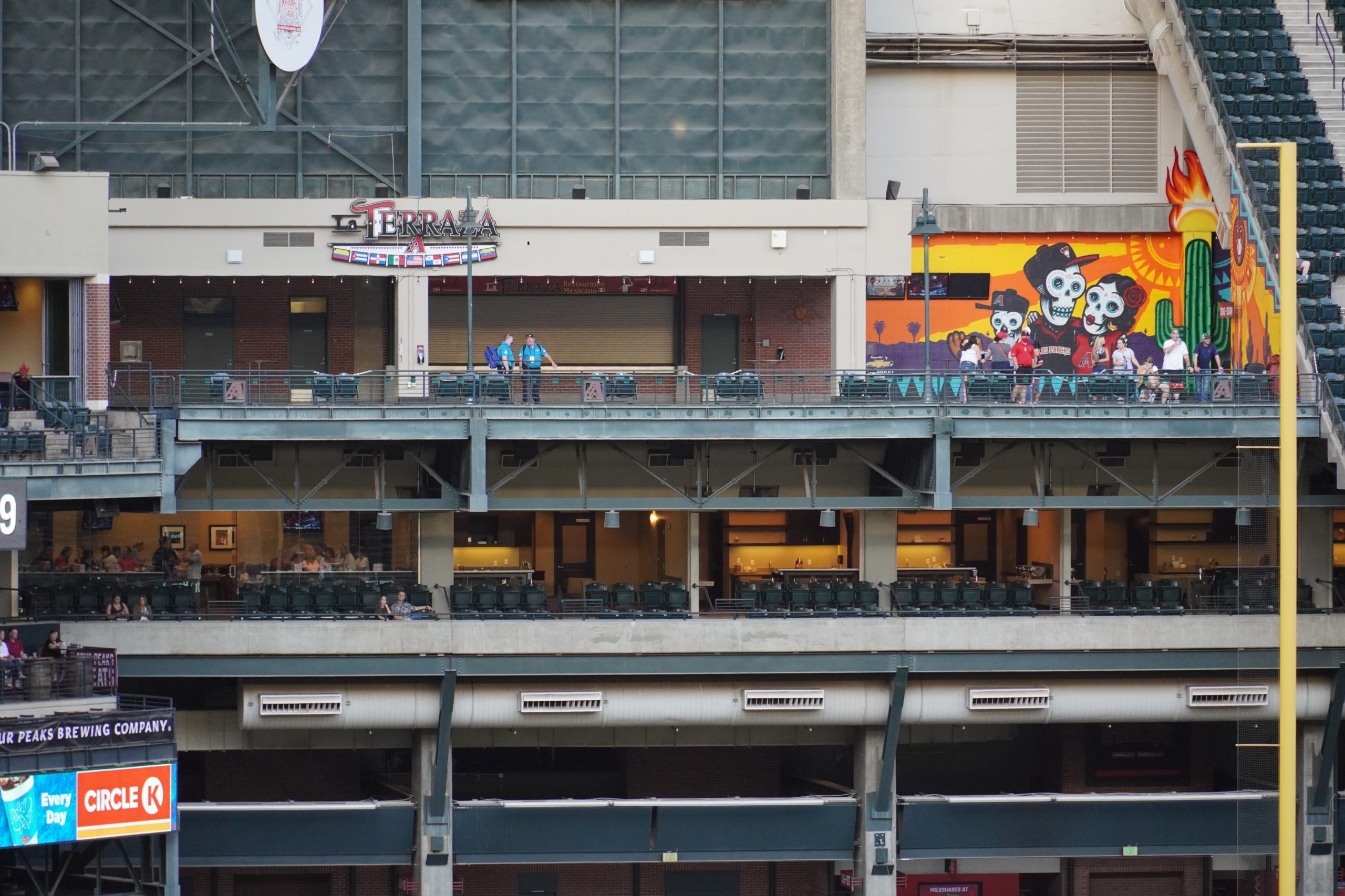 With the roof open, a few skyscrapers from the Phoenix skyline are visible beyond left field, though the view is modest and best appreciated from the upper decks – they’re barely noticeable from the lower level. The skyline itself isn’t particularly expansive, so there’s not a ton to take in.