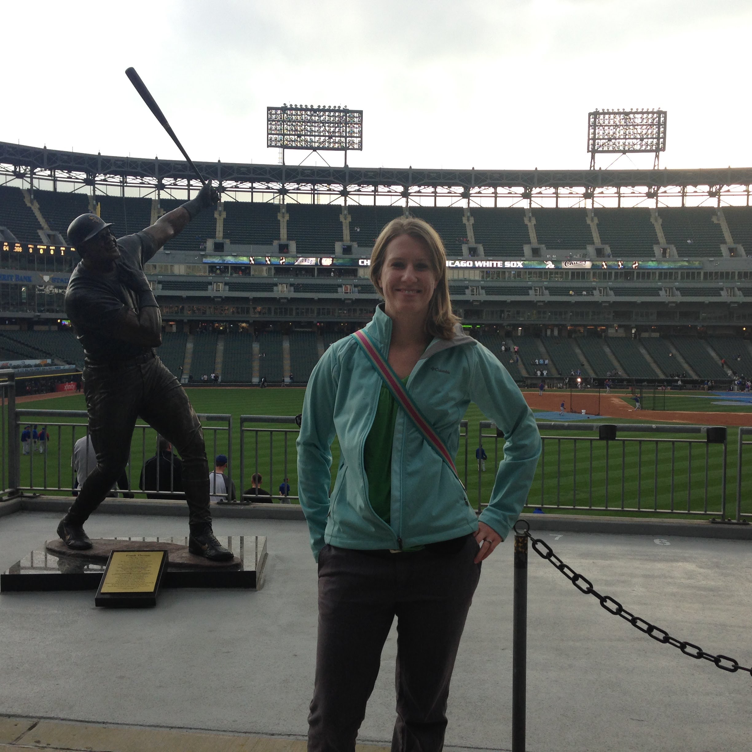 There are several statues featured throughout the stadium including Frank Thomas, Minnie Miñoso, Carlton Fisk, Charles Comiskey, Luis Aparicio, Nellie Fox, Billy Pierce, Harold Baines, and Paul Konerko. I got a picture with Frank 🙂