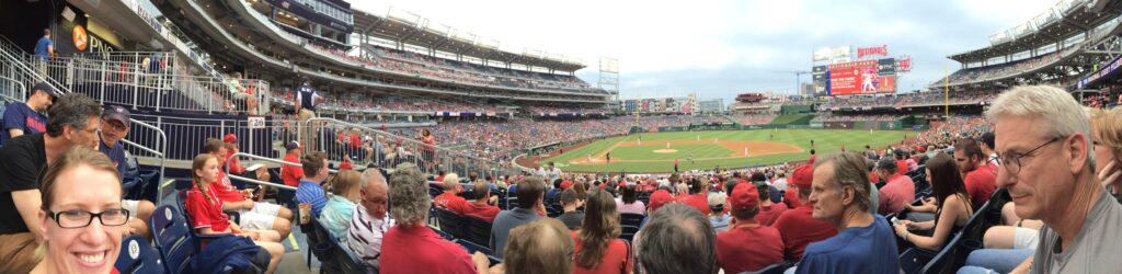The game featured a small crowd and a muted atmosphere, thanks in part to a rainy weekday matchup and an unfortunate loss. As a relatively new franchise in D.C., the Nationals are still cultivating their fan base, but with a winning roster, we expect those stands to fill up soon. Clad in Cardinals red, we blended right in with the friendly home supporters, and since we were cheering for the Nats, we didn’t encounter any hassles.