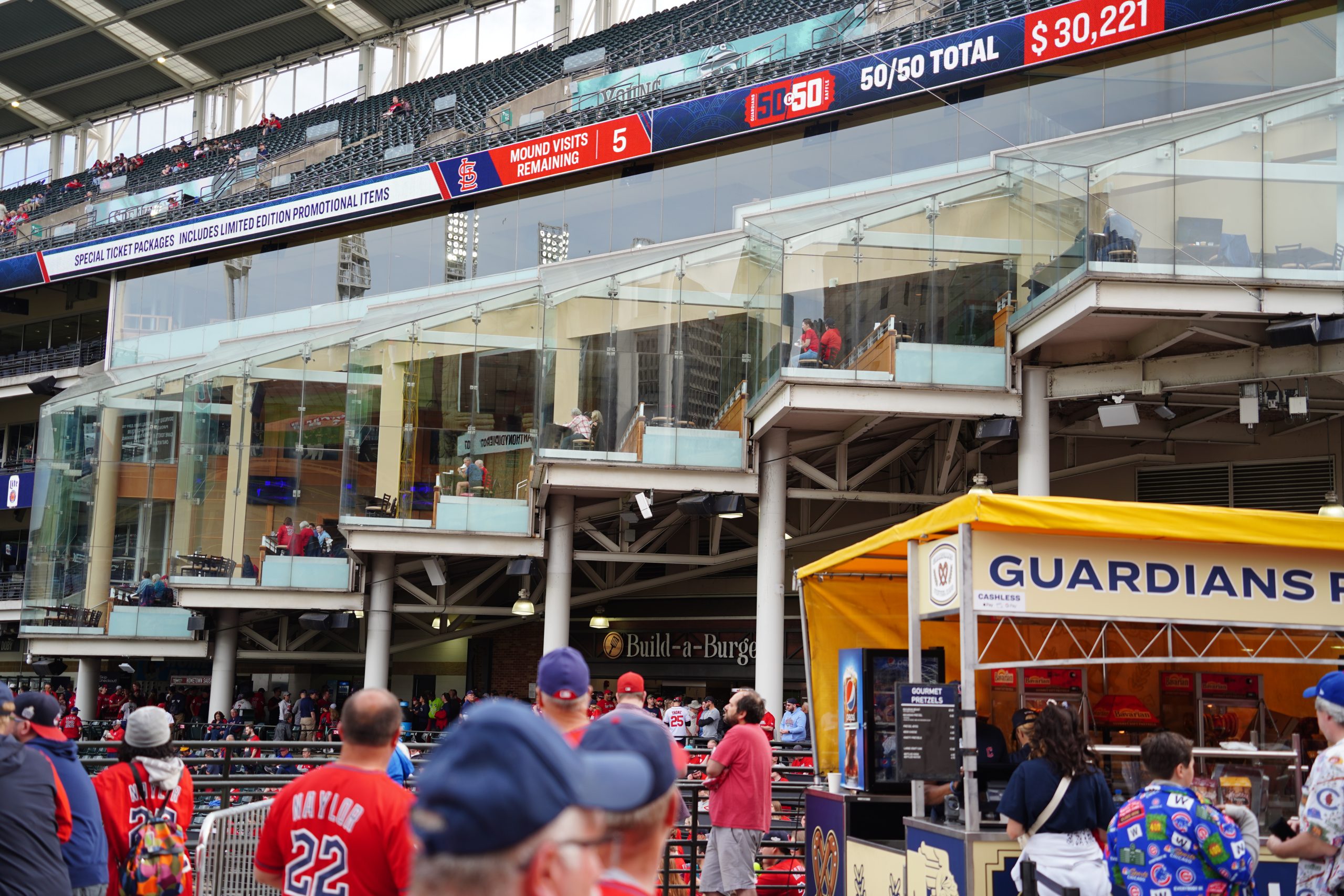 The main concourse near center field was extremely congested during our visit, largely due to a cluster of concession stands, the popular Corner hangout area, and special food promotions that choked the flow of foot traffic. Combine that with $1 hot dogs, $2 pregame beers, and a visit from the St. Louis Cardinals, and it created the perfect storm for packed walkways. Attendance was among the highest in recent Progressive Field history, so it’s worth noting that this level of crowding may not be typical.