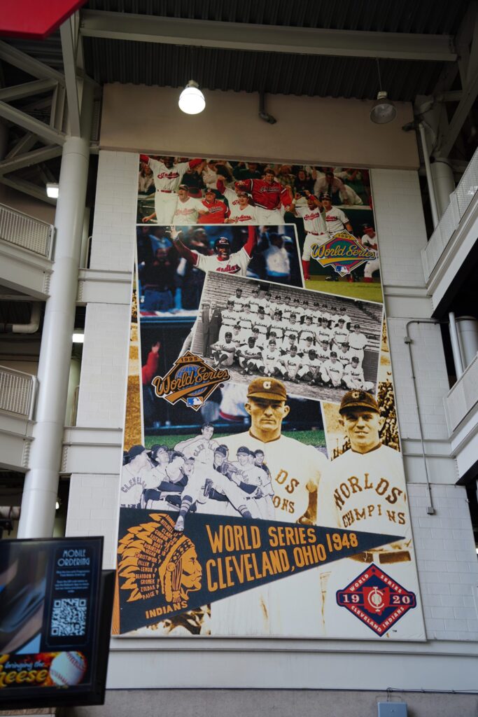 There are a plethora of statues and historical tributes throughout the stadium, adding depth and character to the overall experience. At the center field entrance, you’ll find statues of Bob Feller, Lou Boudreau, and Larry Doby, welcoming fans with a nod to Cleveland’s baseball legacy. Inside Heritage Park, there’s a statue of Jim Thome, along with a Frank Robinson statue at its center – surrounded by plaques honoring other Indians/Guardians legends.
