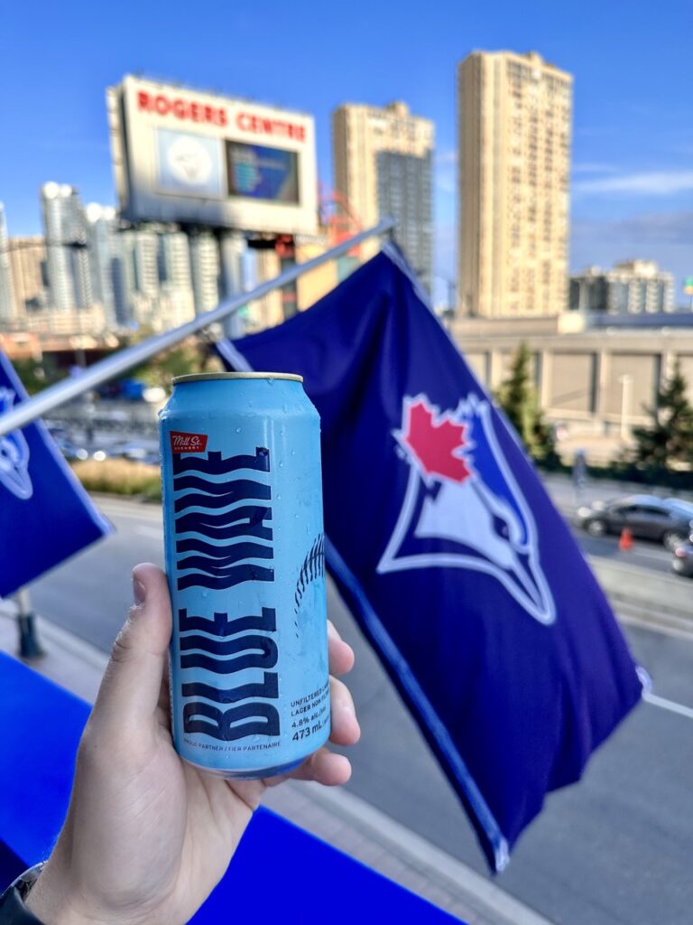 The āOK Blue Jaysā Rum Punch cocktail in a keepsake cup was pretty and quite refreshing; it wasnāt as sweet as a typical rum punch. The local Mill St. Brewery Blue Wave tasted like a Kona Big Wave ā light and a little hoppy.