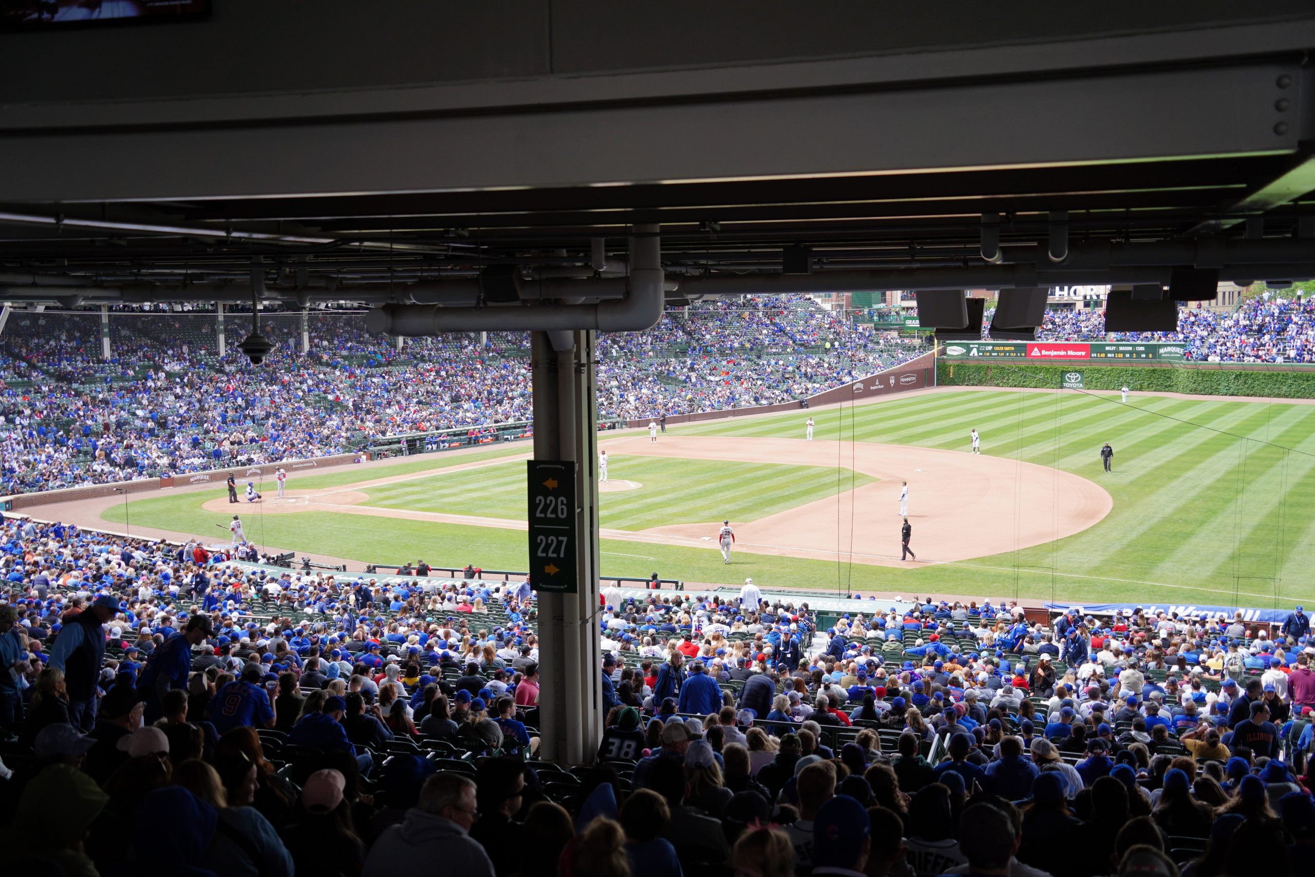 Wrigley doesn’t offer many in-stadium amenities, likely due to its historic design and limited space. We did spot the Wintrust Jim Beam Hangout on the main level and noted a few premium, ticketed areas like the Ideal Suite Level and Maker’s Mark Barrel Room, but overall, adult-focused lounges are minimal inside the park. Thankfully, Wrigleyville just outside the gates more than makes up for it with vibrant bars and restaurants.