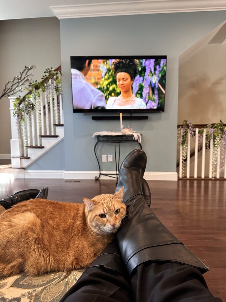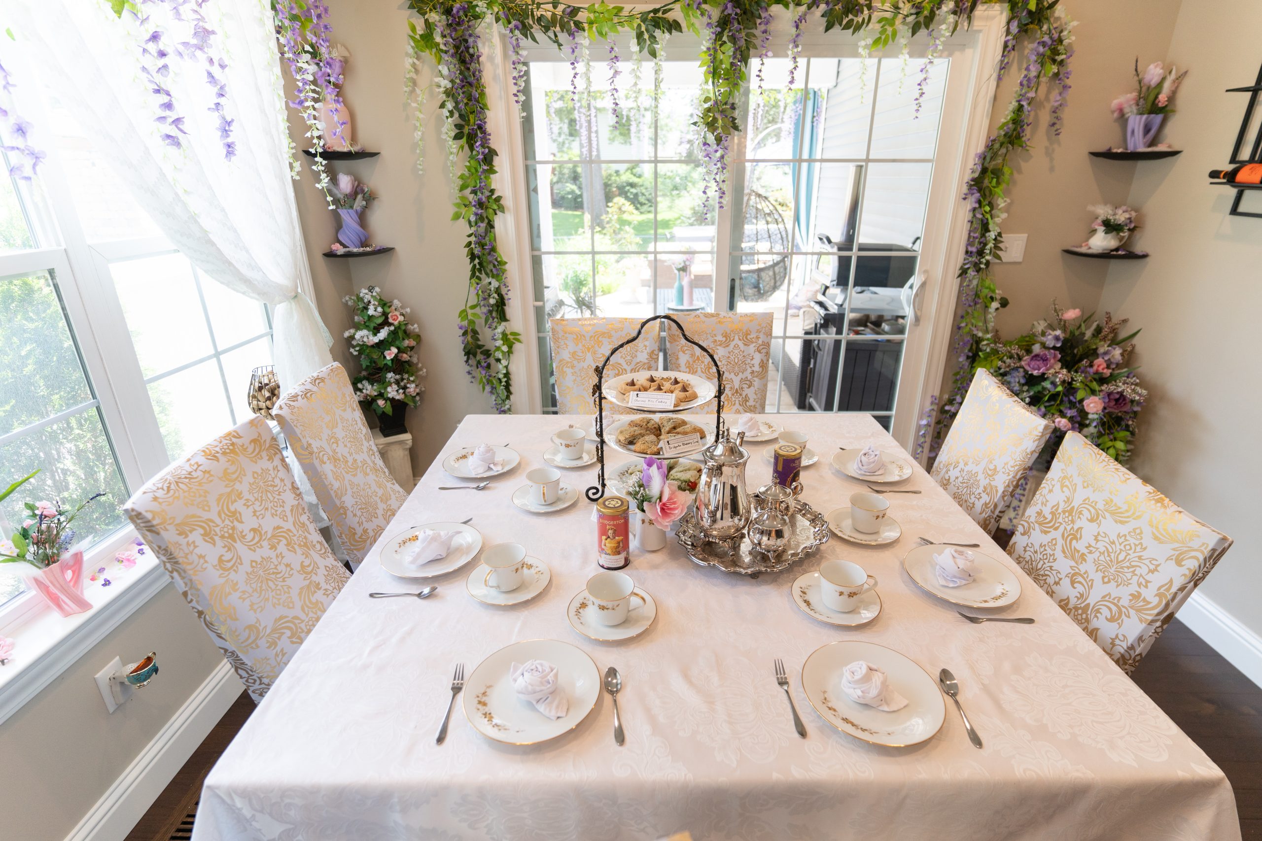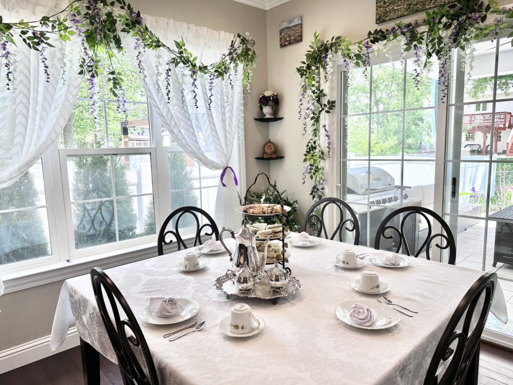 Bridgerton is my absolute favorite show, and I go all-in on the regency vibes! From draping wisteria around the house to hosting elegant afternoon teas, we’ve turned our watch parties for Seasons 2, 3, and Queen Charlotte into full-blown soirées worthy of Lady Whistledown’s attention.