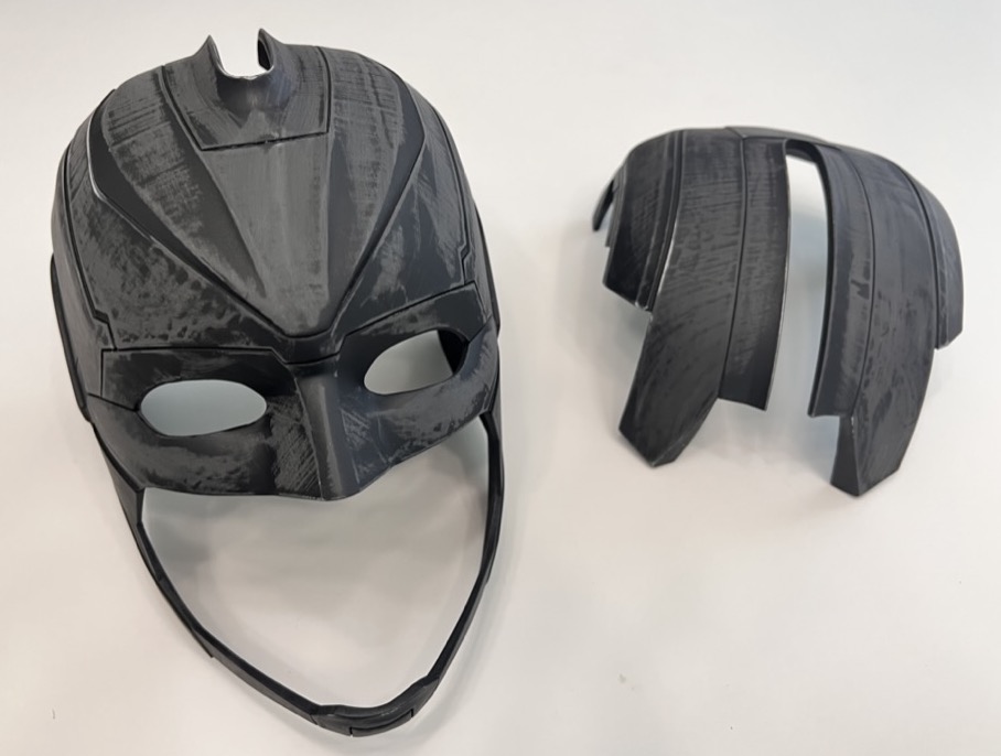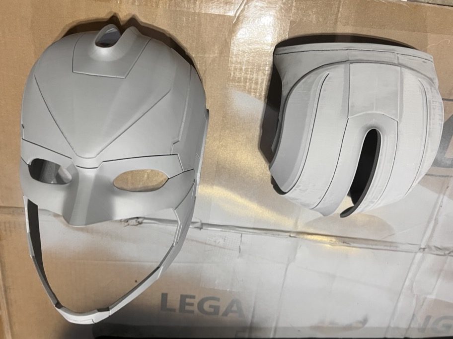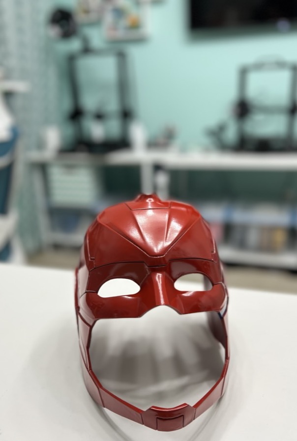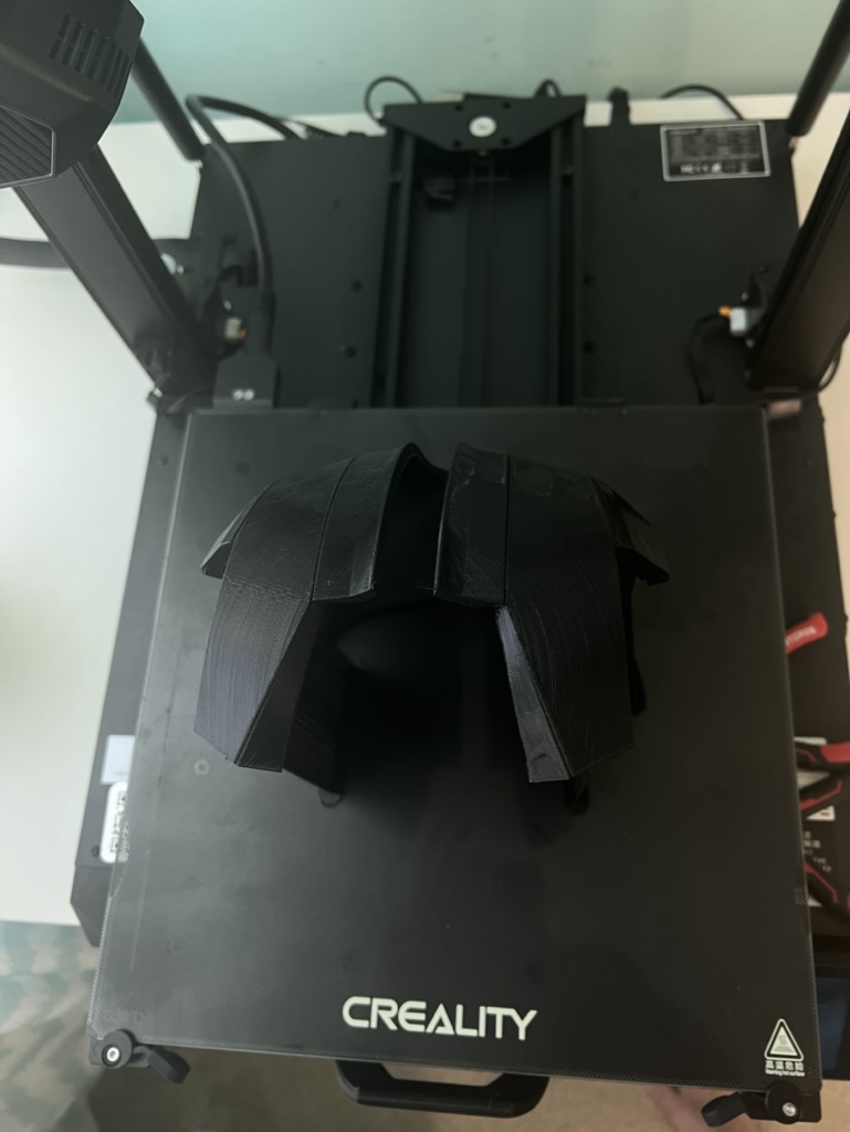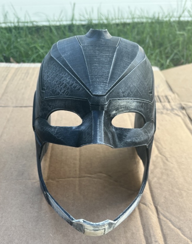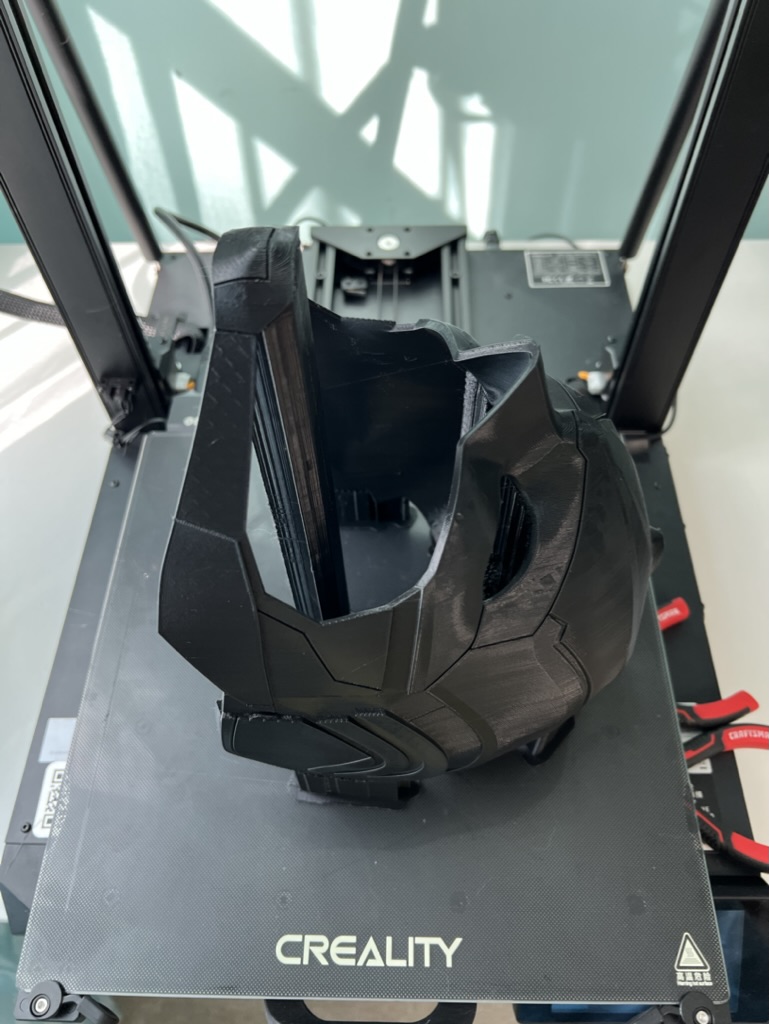 Printed the Captain Marvel helmet with black PLA+ on my CR-10 SMART (105% scale, 20% infill, supports, raft). The front piece took ~2 days and the back took 1 day.
