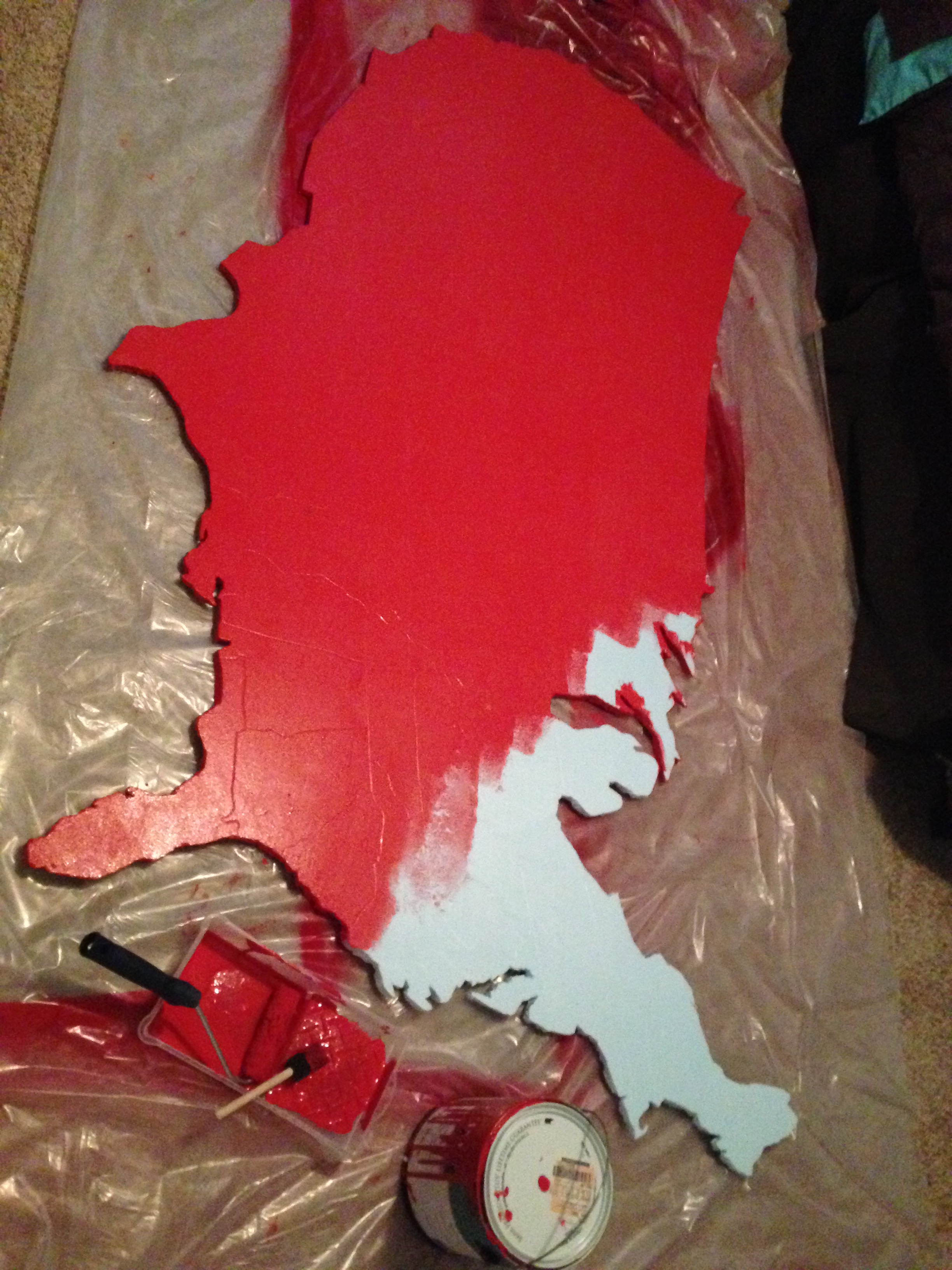 - If you have a projector, project the image of a US map onto the board and trace the outline of the country and states. Otherwise you can free-hand it. I pressed in pretty hard when I traced to make an indentation that was easy to see after painting when drawing in the states.