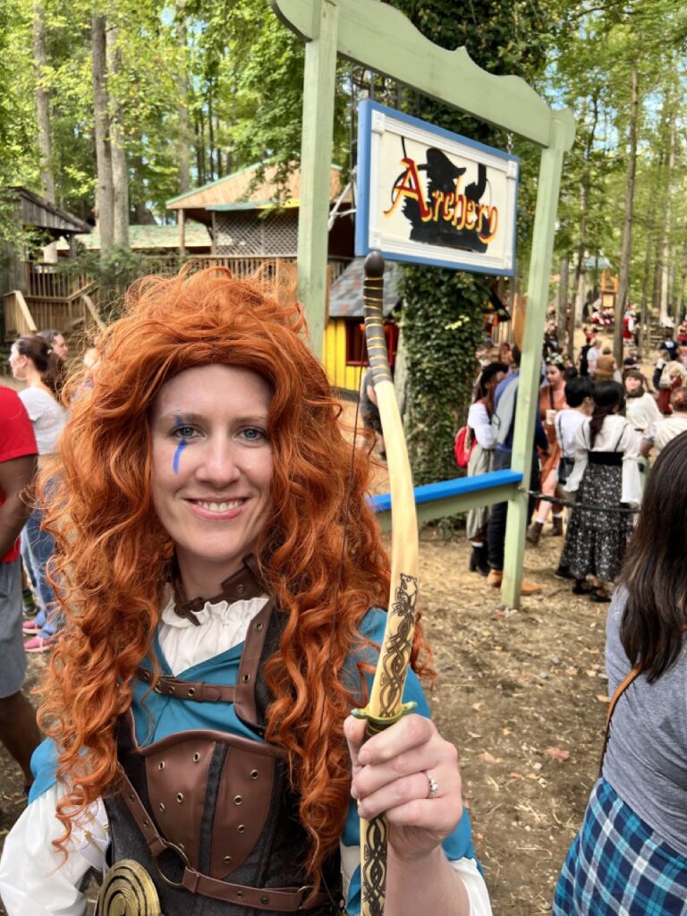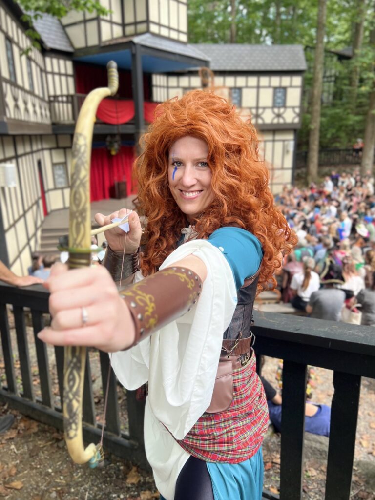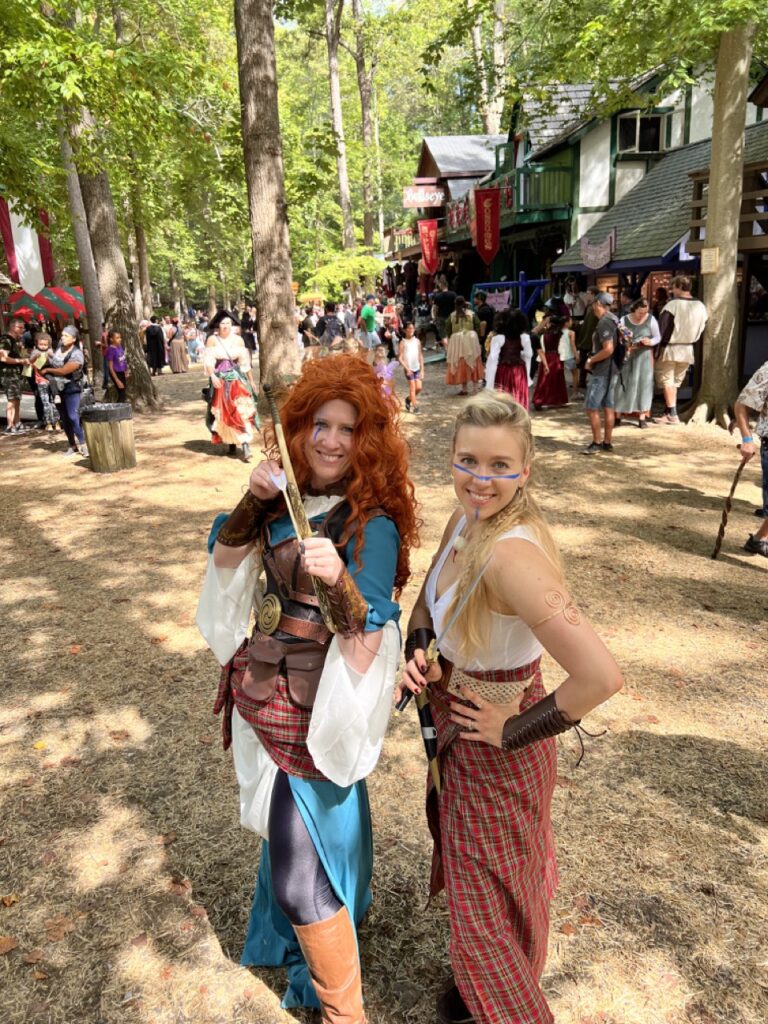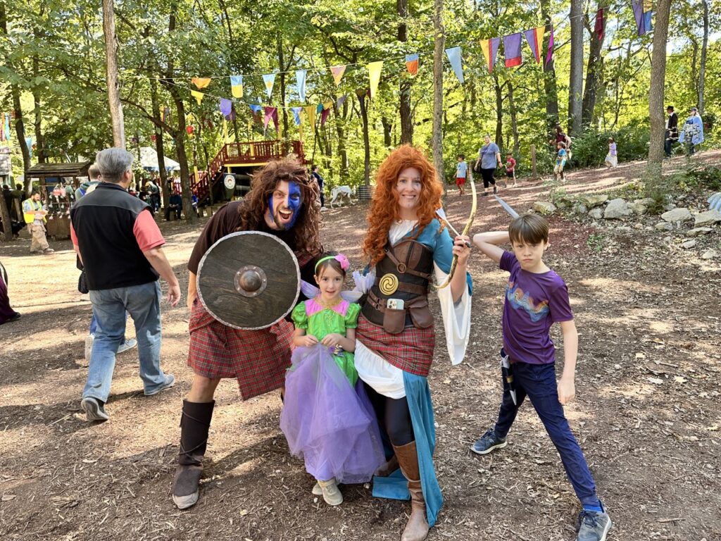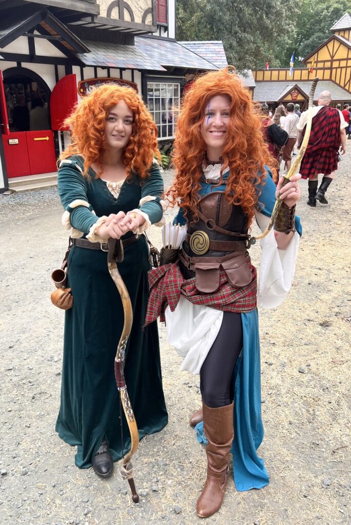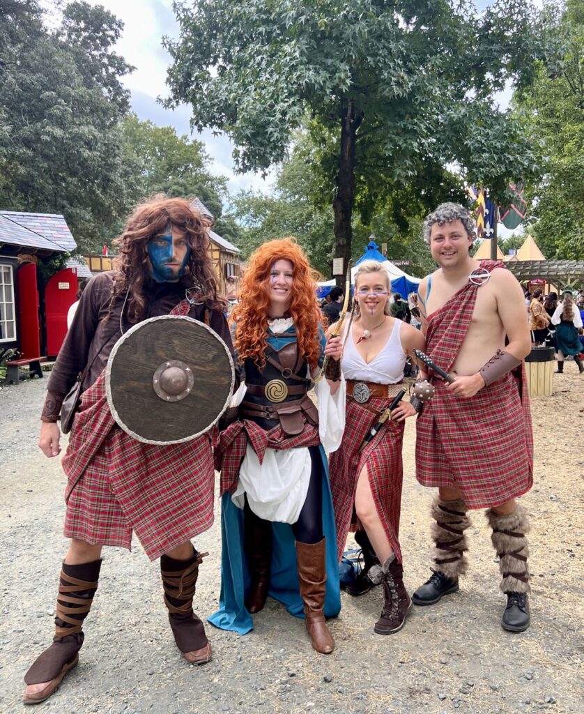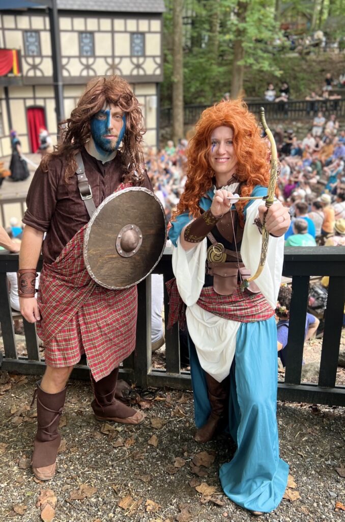 We suited up as Warrior Merida and William Wallace for Celtic Weekend at both the Maryland and St. Louis Renaissance Festivals in 2022. It was an unforgettable adventure—our first out-of-town Ren Fest trip with our friends Anne and Geran, and the perfect opportunity to introduce our niece and nephew to the magic of the faire. Bagpipes, battle cries, and braided hair… what more could you ask for?