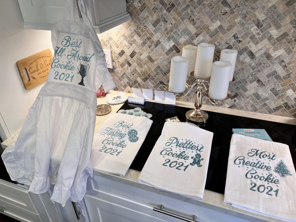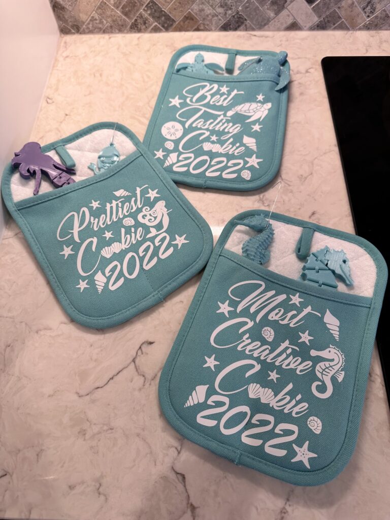 I love adding a little friendly competition to our cookie exchange by creating prize categories—it definitely inspires more extravagant (and delicious!) cookie creations. I usually include categories like Best All Around, Most Creative, Best Tasting, and Prettiest. For prizes, I try to match them to the theme—like giving a set of cookie cutters to the winner of Prettiest Cookie. Over the years, I’ve had prizes like aprons, pot holders, cookie cutters, recipe books, cookie scoops, cookie stamps, hand towels, decorative dishes, and cupcake or cookie carriers. The custom gifts I make with my Cricut or 3D print are the most meaningful.
