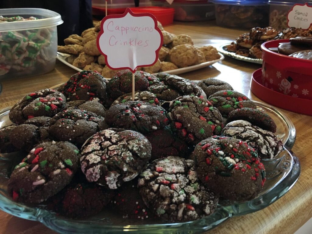 I love setting out extra pretty platters for guests to use during the swap—it makes the cookie display look absolutely gorgeous and festive! Plus, it lets everyone load up their cookies without crowding their own containers until it’s time to take them home.