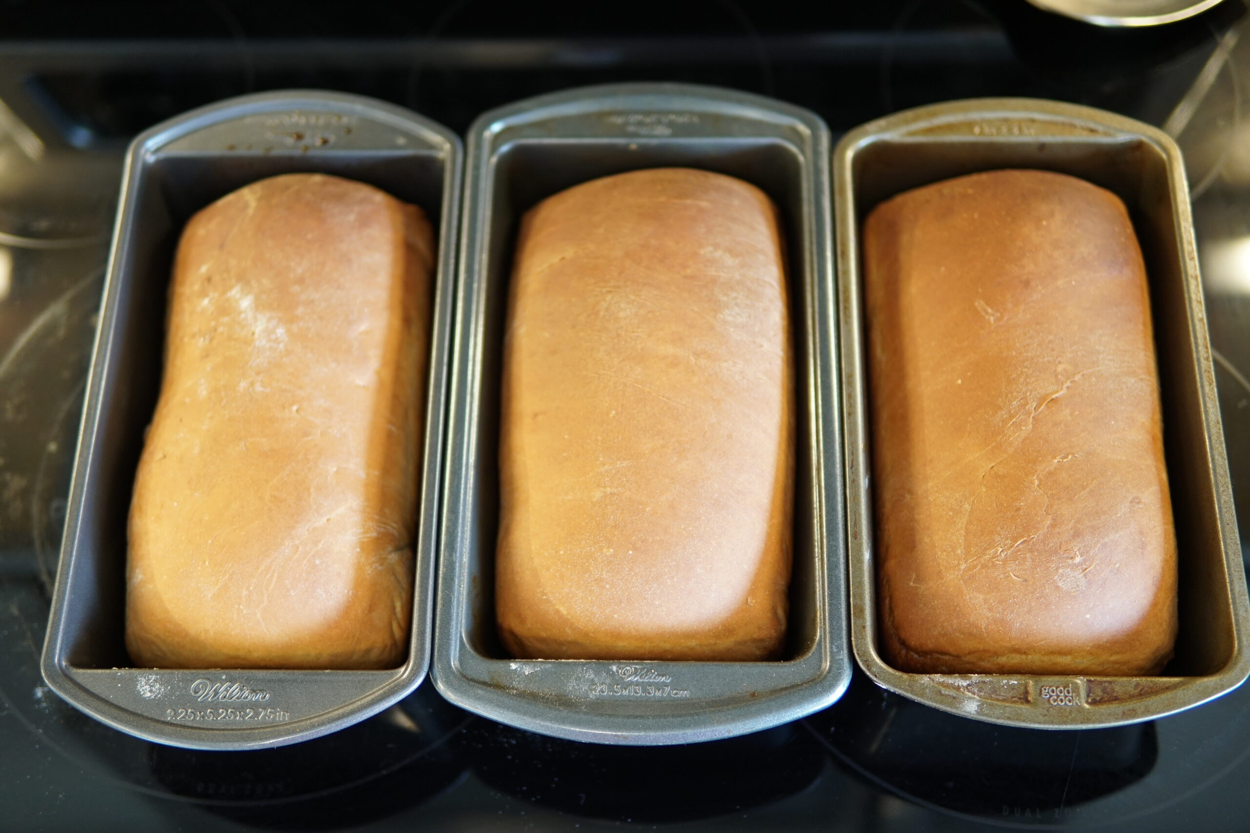 - Spray three loaf pans with oil and transfer loaves into pans.