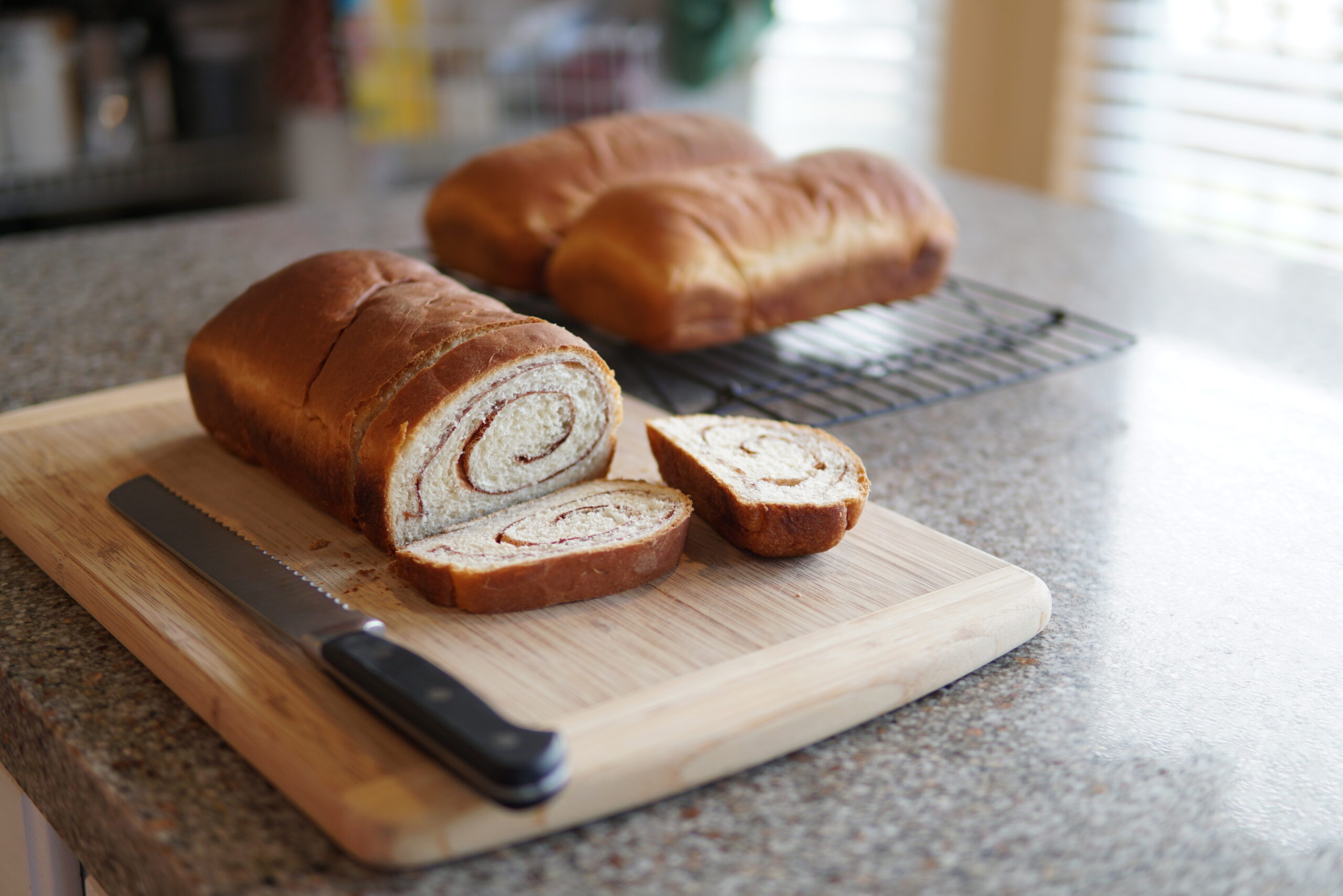 - Allow to cool in pans for ~10 minutes and then transfer to wire racks to finish cooling. Slice and serve warm with butter. Freeze loaves that are not consumed within a few days.