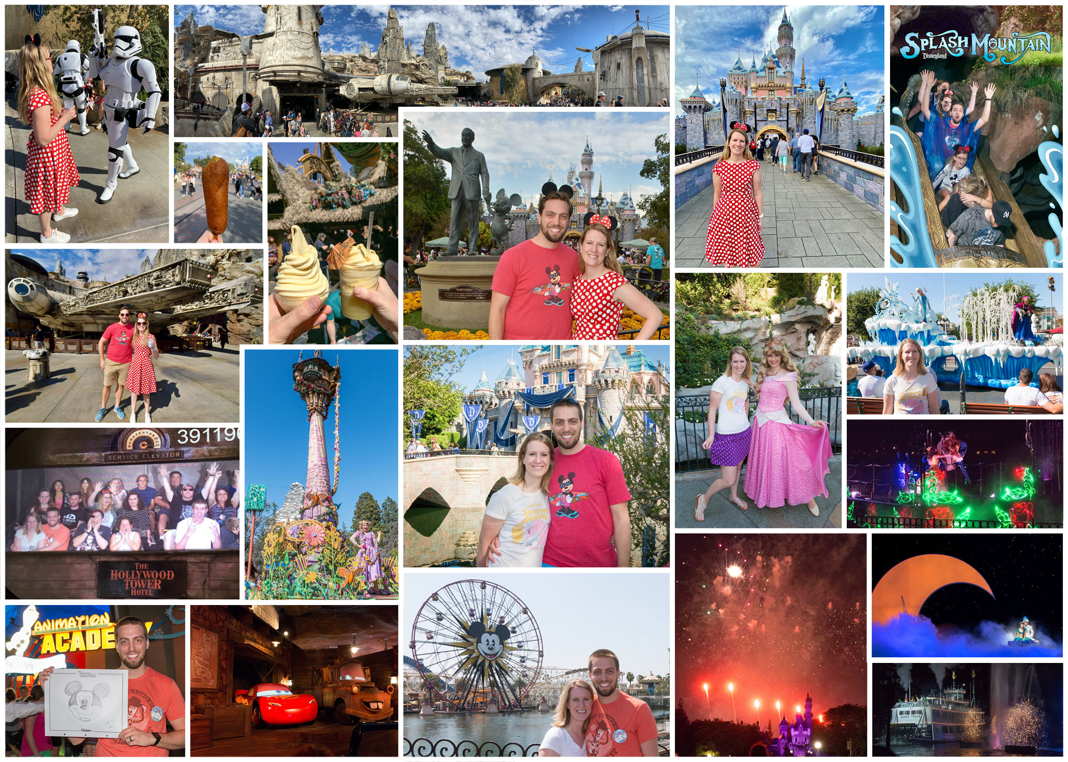 For our annual joint birthday trip in April 2015, we celebrated with two unforgettable days at Disneyland and Disney California Adventure, while also checking Angel Stadium and Dodger Stadium off our ballpark tour. We hit all the big rides right at rope drop, indulged in Dole Whips and turkey legs, and admired the sparkle of Sleeping Beauty Castle ahead of Disneyland’s 60th anniversary. Highlights included Cars Land, a hilarious Frozen show, the spectacular Aladdin stage production, and an unexpected Tower of Terror breakdown to end it all. We returned in 2019 during the Adobe MAX conference for a one-day Disneyland adventure – this time squeezing in even more magic with Star Wars: Galaxy’s Edge including blue milk and cocktails at Oga’s Cantina.