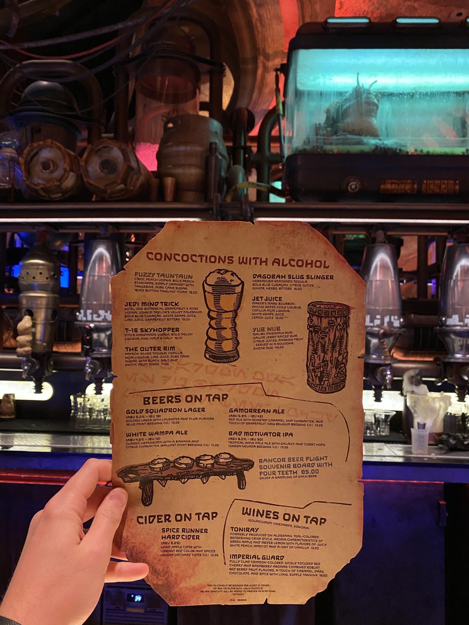 - 🍹 Drink @ Fuzzy Tauntaun – Oga’s Cantina (🎟️ Reservation recommended)