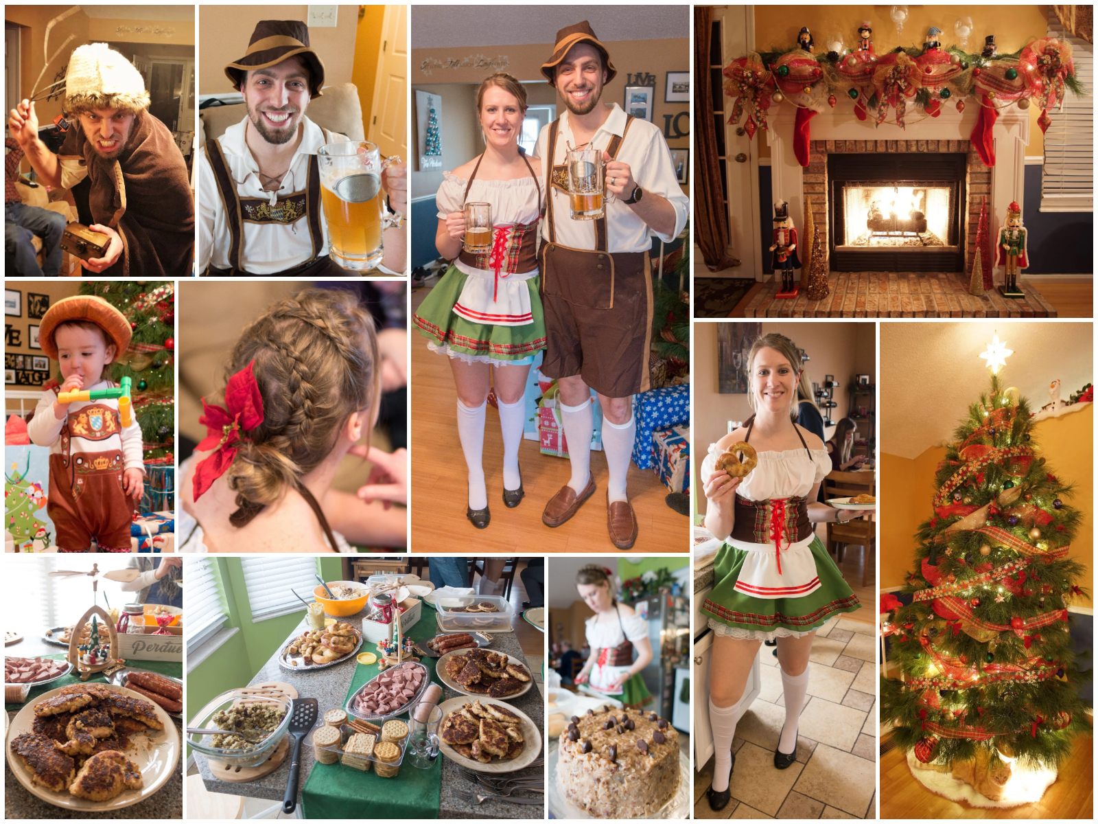 Belsnickel made a special appearance to coordinate the gift exchange and determine who was impish or admirable via his magical jelly beans. Of course Scott and I were in our German lederhosen and dirndl. Layla wore a cute lederhosen! I had fun doing a crown braid in my hair.