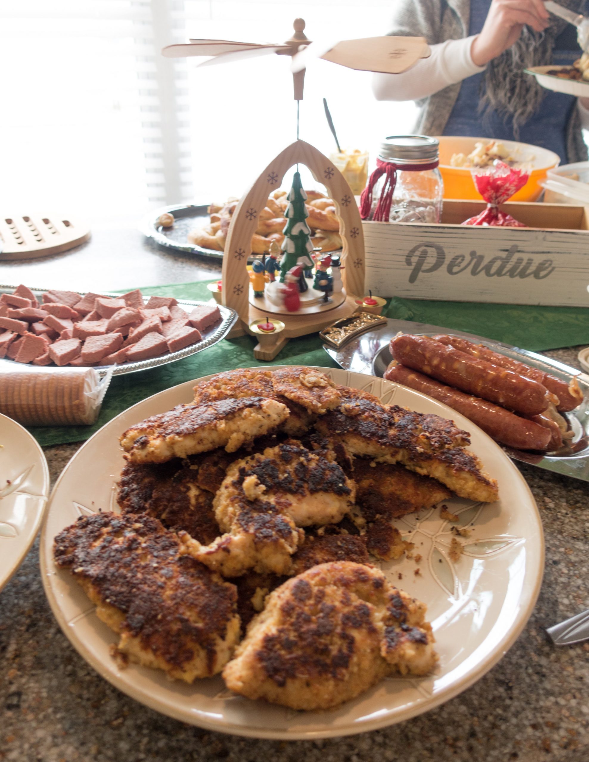 We had quite the German feast including homemade pretzels, wurst (sausage), bier käse (beer cheese), chicken schnitzel, bierock (stuffed rolls), kartoffelsalat (potato salad), sauerkraut, braunschweiger (nostalgic spreadable pork meat), kipfles (family favorite cookie at every Christmas), German chocolate cake & martinis, glühwein (mulled wine), and Weihenstephaner hefe weissbier (Scott’s favorite German beer). Here’s the Rezape food album with all the recipes (request to be my friend if you don’t have access).