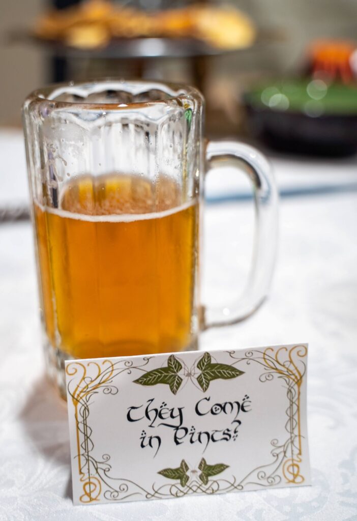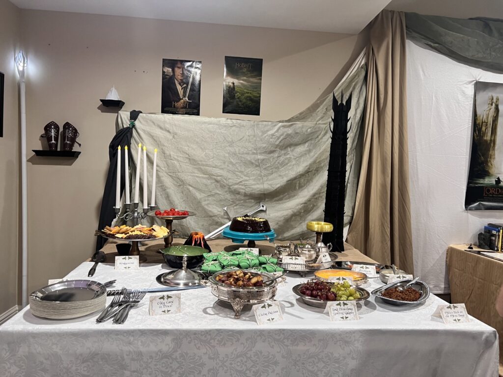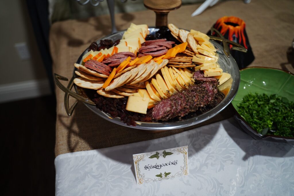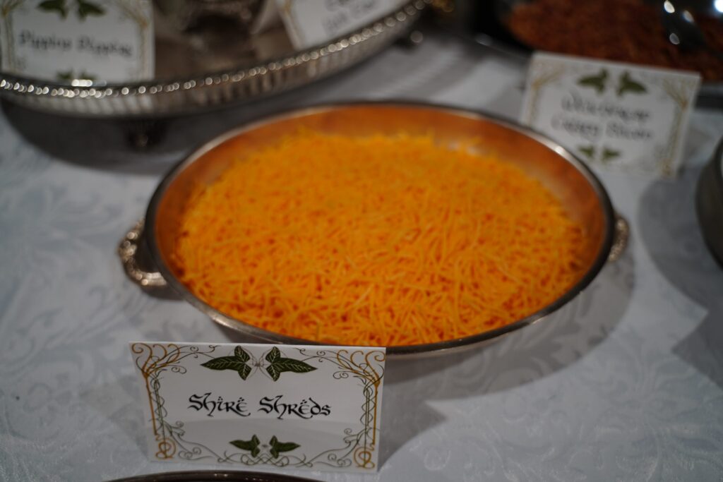 The food included lembas bread, Ring of Power cake, Mtn Dewm cocktails, Misty Mountain mead, “They Come in Pints?” beer, and loaded potatoes consisting of “Taters Precious,” “Meat’s Back on the Menu, Boys,” “Weathertop Crispy Bacon,” and “Pippin’s Peppers.”