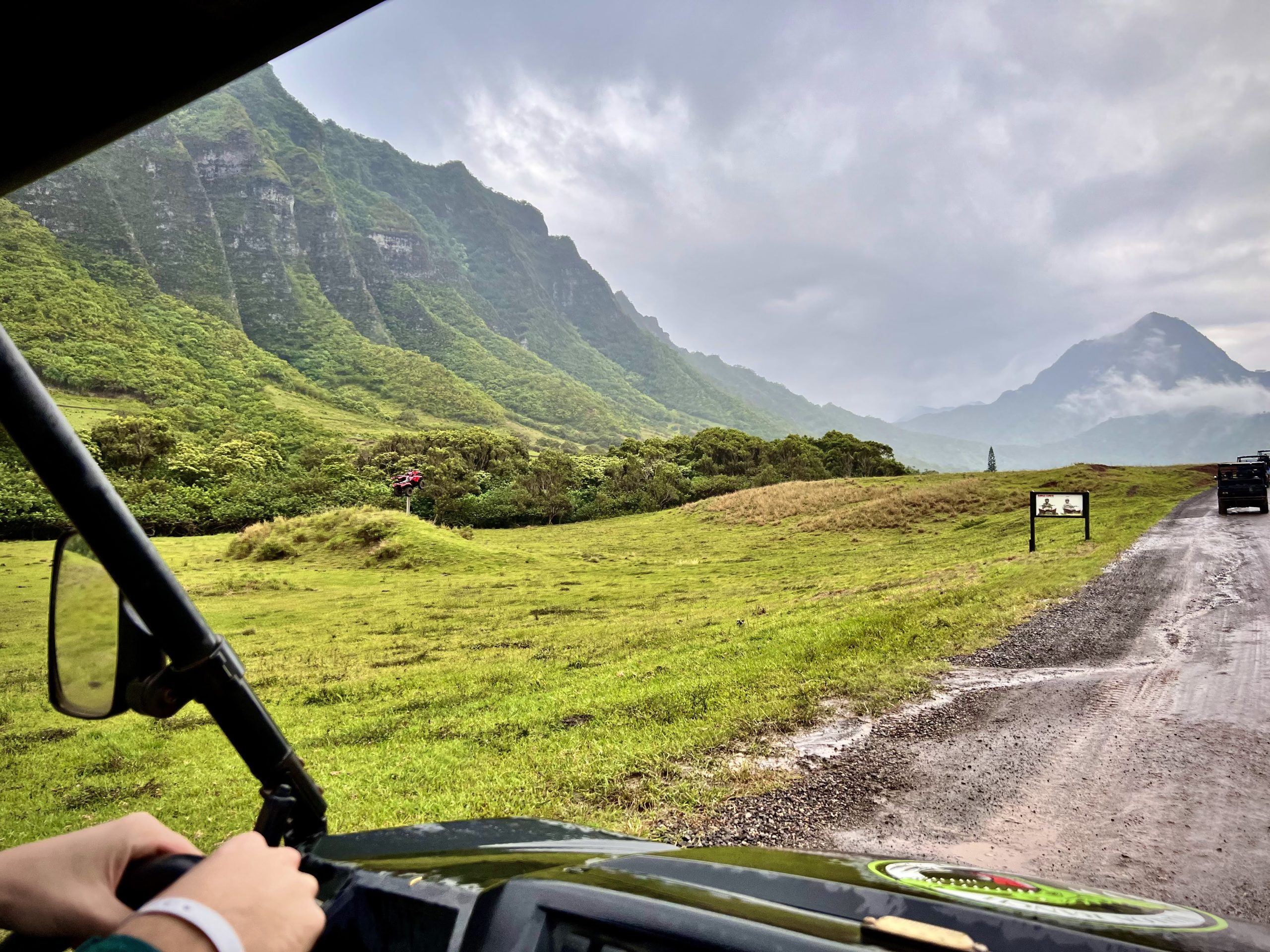- 💡Tours go rain or shine, so check the weather & bring rain gear or a change of clothes, if necessary. It rained during the beginning of our tour, but we came prepared with rain jackets/ponchos. We were still able to have an amazing time, and it made for some ominous pictures just like in Jurassic Park when the T-Rex chases the jeep.