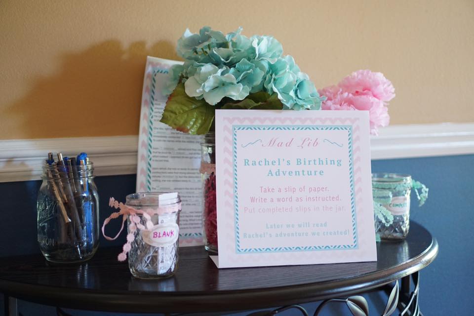 We had several fun games including Mad Lib, I Spy photo scavenger hunt, and Time Capsule for Layla (baby girl). I created all the graphics in the pink and mint color scheme.