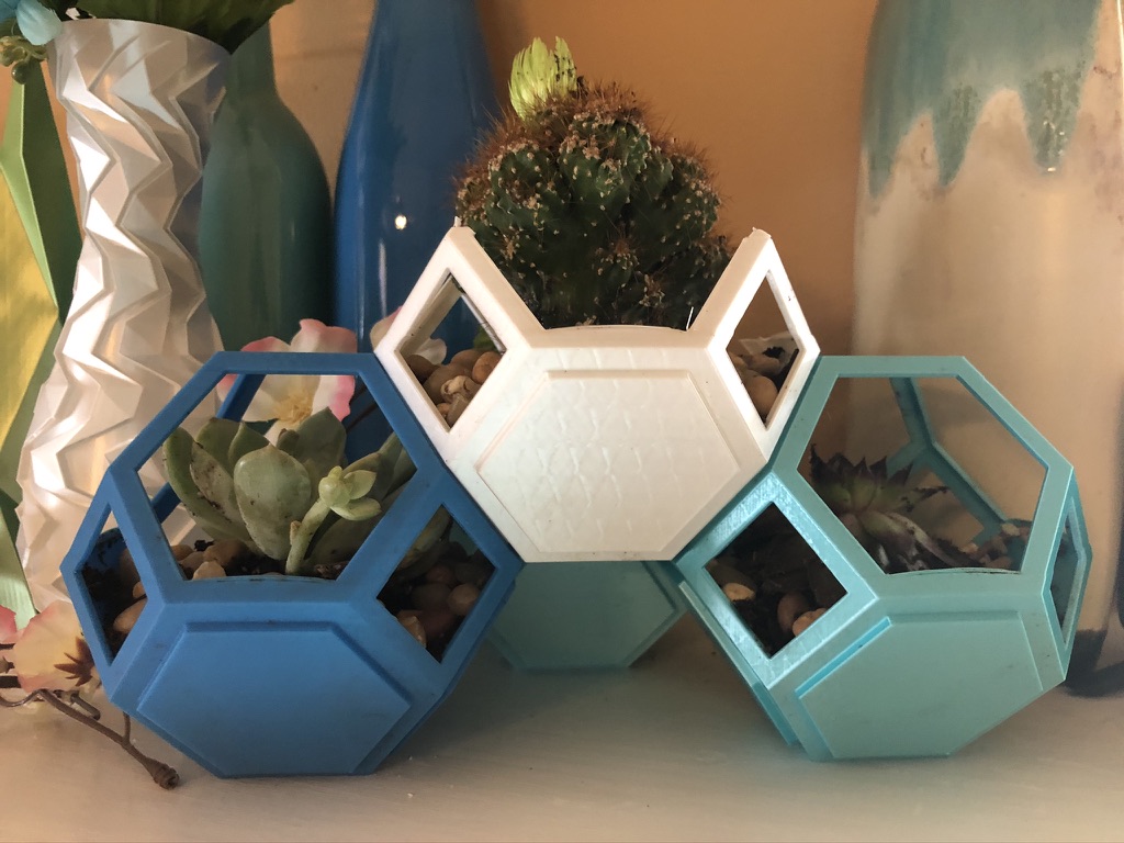 I found an amazing stackable planter design on Thingiverse that’s great for succulents. I found some other geometrical pots that also worked great for succulents.