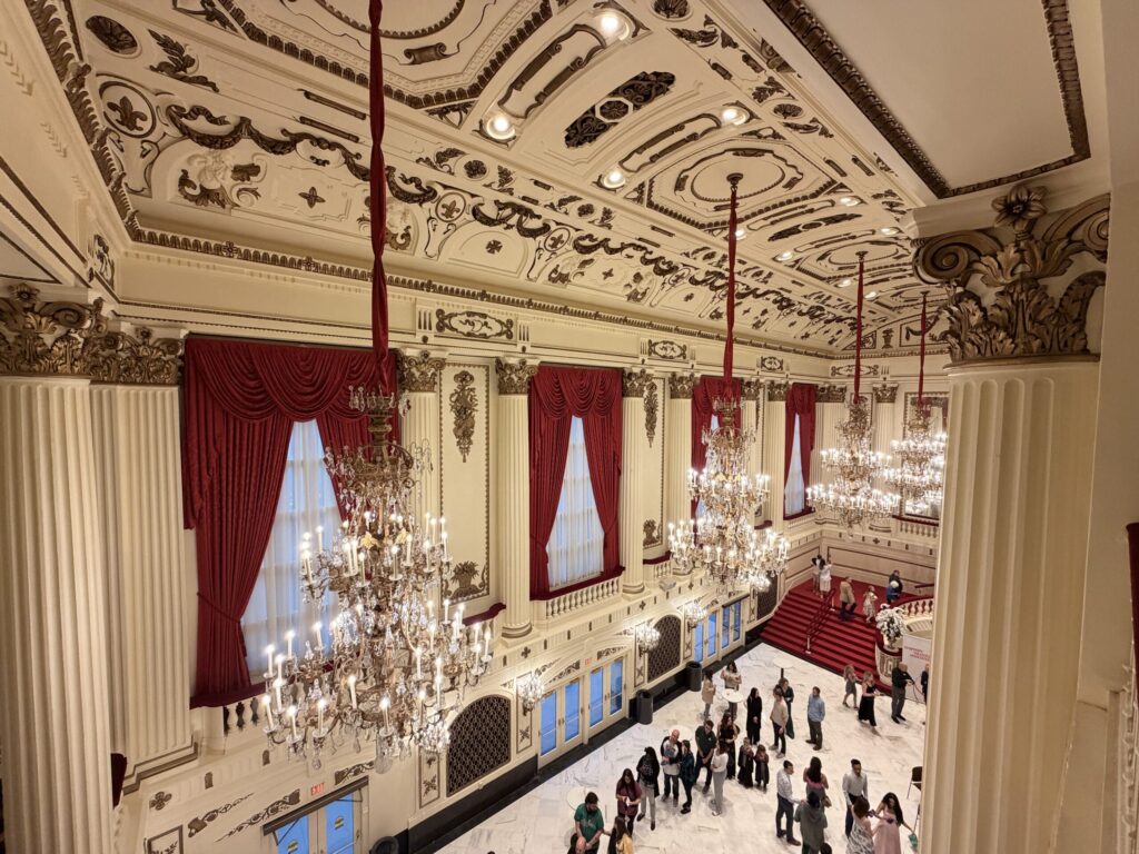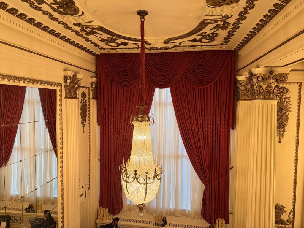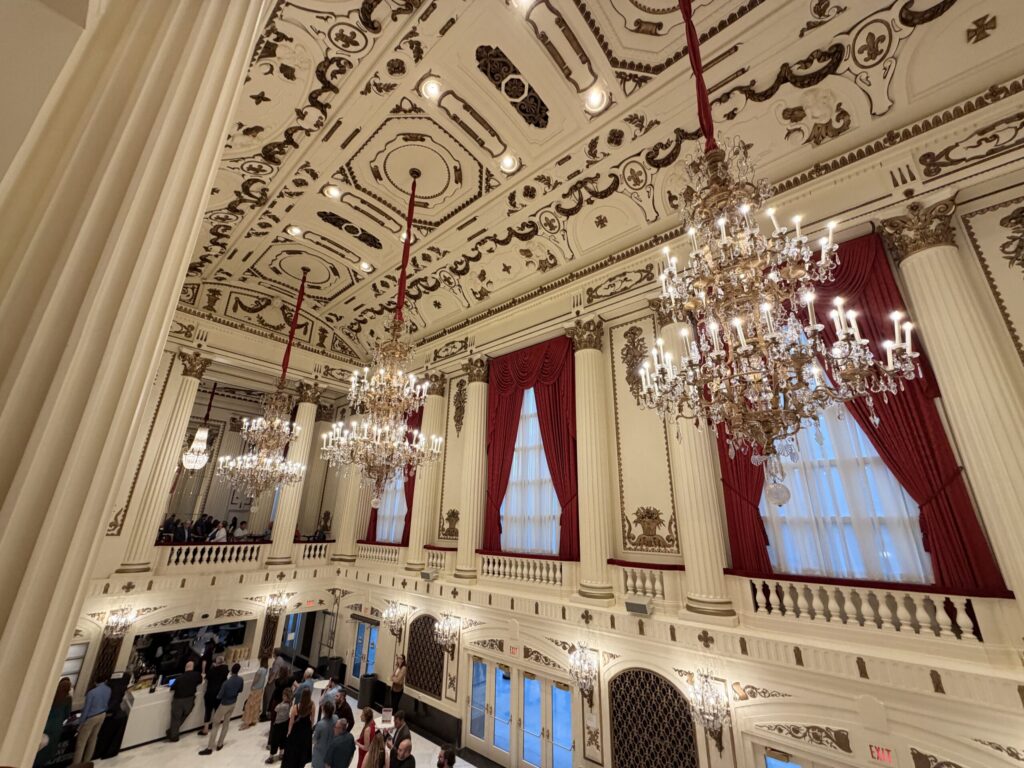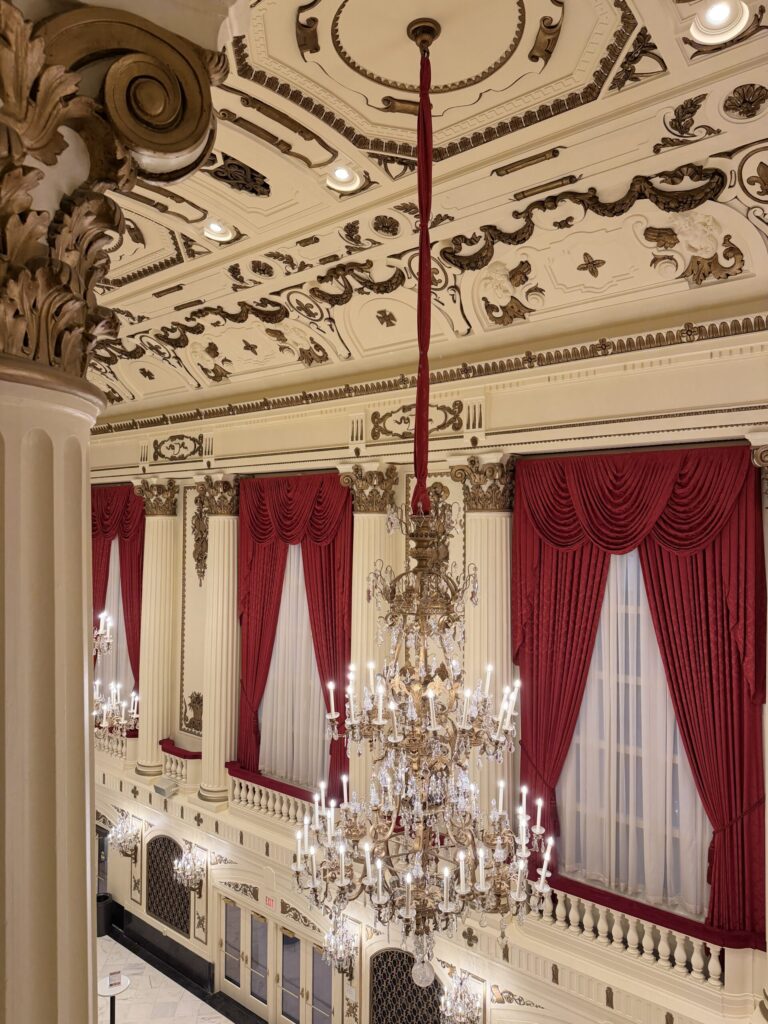 Step inside and you’re instantly swept into another era. The hall’s French Renaissance architecture – complete with Italian chandeliers, marble columns, and gold-leaf detailing – has been meticulously refreshed to its original brilliance. Restoration teams hand-cleaned every gilded accent and re-illuminated the chandeliers to their former glow. The result is a space that still dazzles with 1920s elegance, now shining brighter than ever under 21st-century lighting.