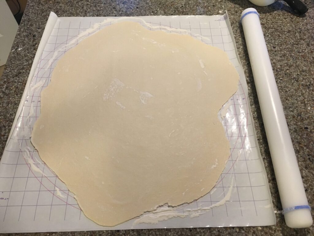 - While dough is resting, add water and bouillon to pot and bring to a boil.
