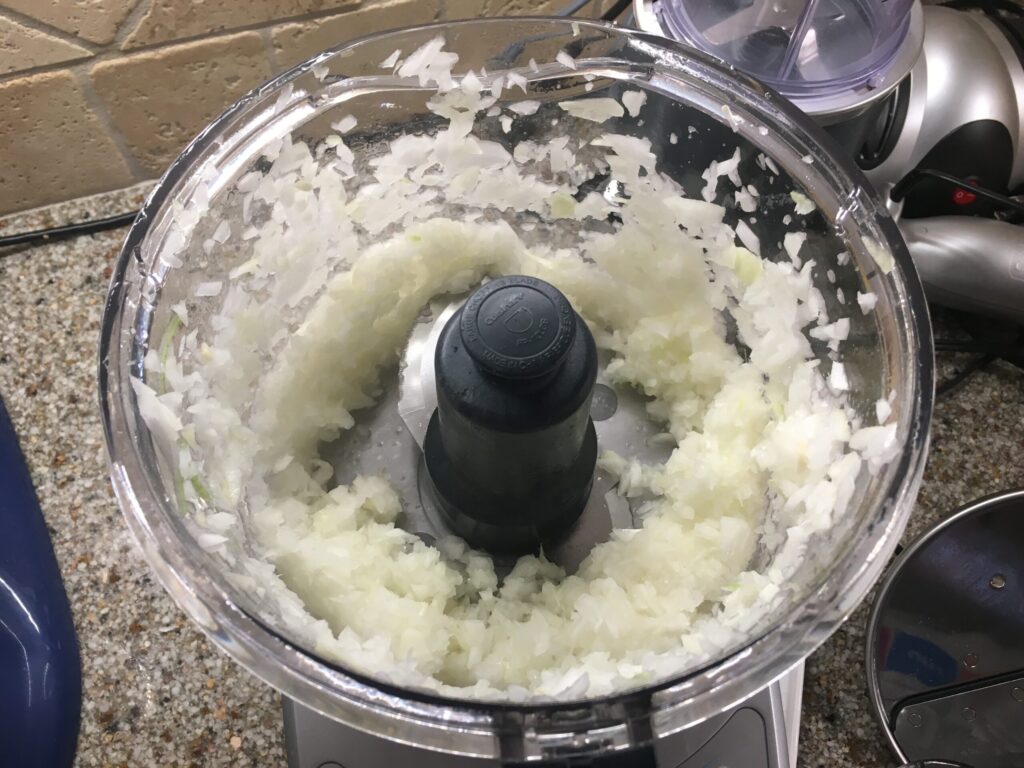- 1 1/2 c onion chopped (~1 medium yellow)