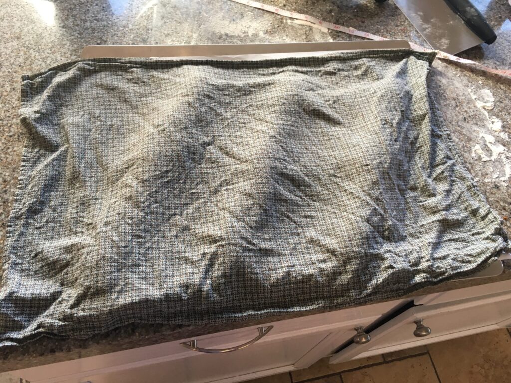 6. Place parchment paper on an insulated aluminum cookie sheet and transfer dough to sheet. Cover with a damp linen towel.