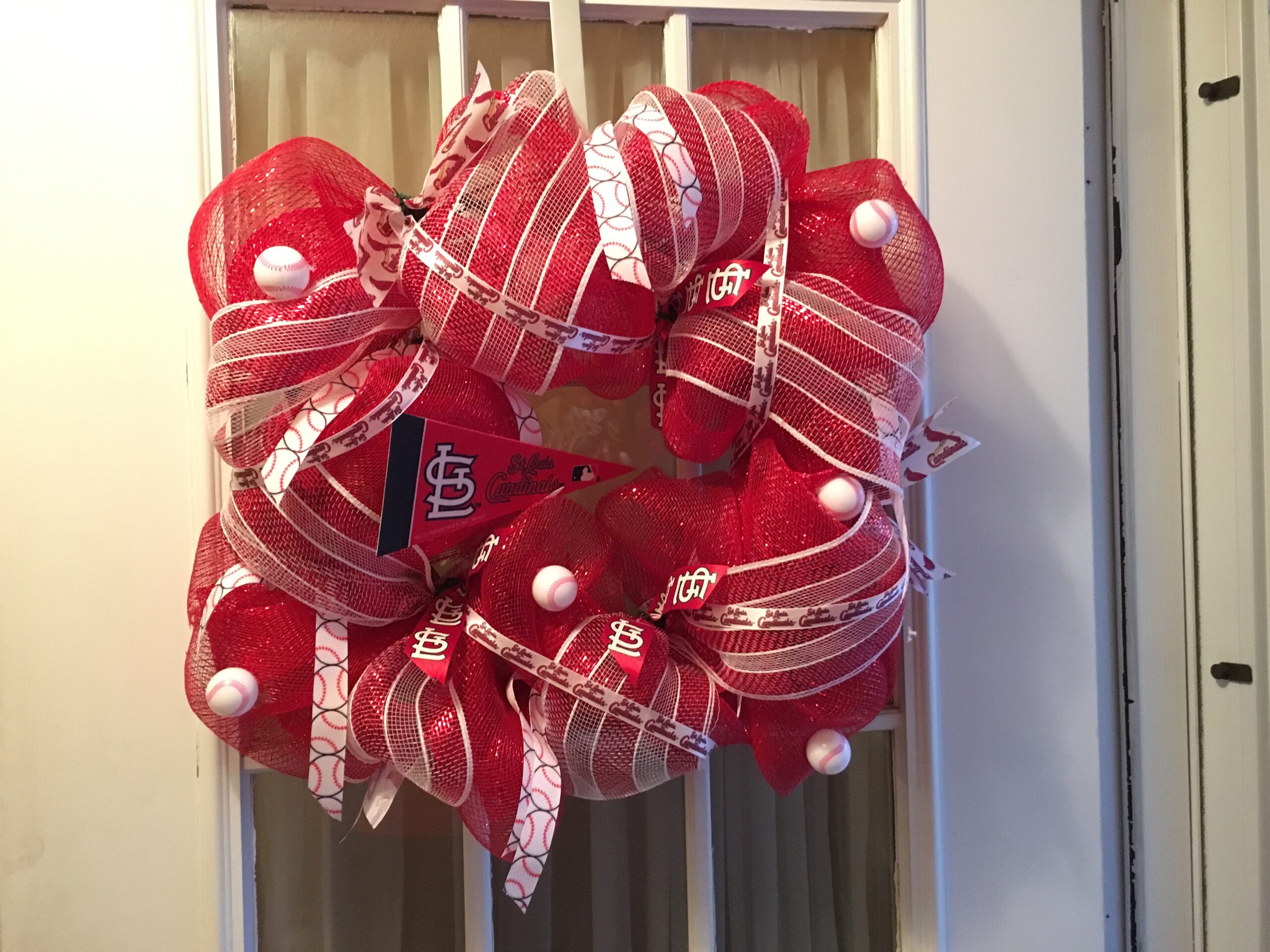 Making deco mesh wreaths is super easy, and they make great gifts! I made this St. Louis Cardinals wreath as a Christmas gift. I loved it so much that I made one for myself too 🙂