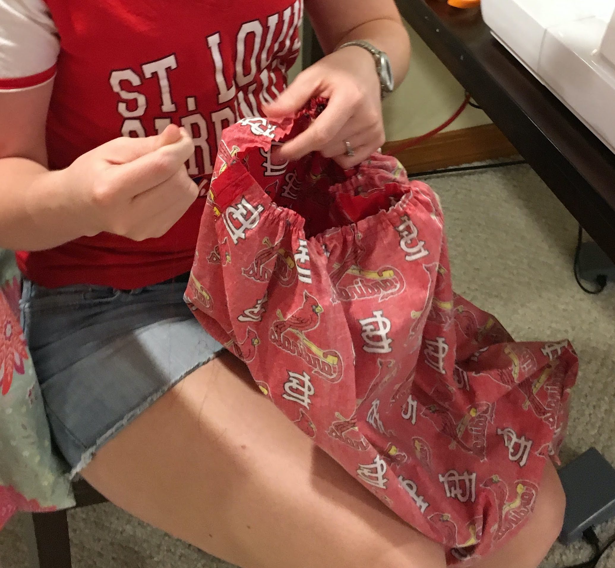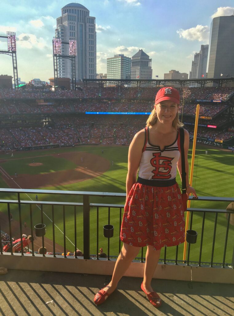 This was such a fun birthday project that my sister and I worked on together! I had been searching everywhere for a cute St. Louis Cardinals dress but couldn’t find anything cute—so we decided to take matters into our own hands. With a little creativity, teamwork, and some crafting magic, we sewed our very own custom Cardinals dress. It turned out even better than I imagined and made the perfect game day outfit with a personal touch!