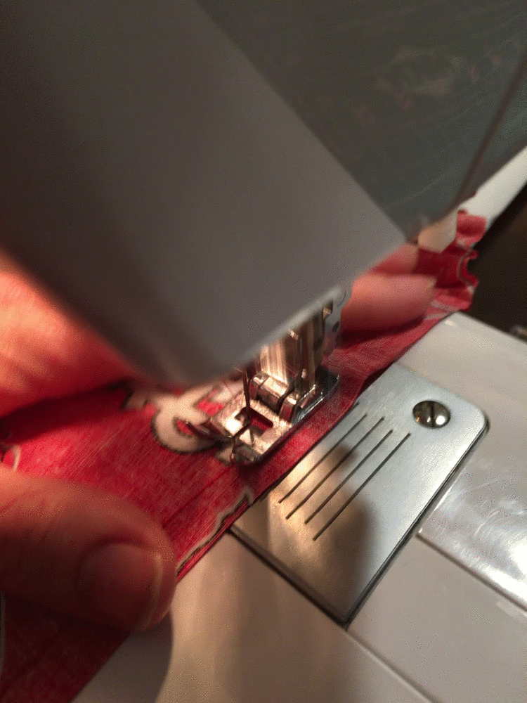 CAUTION: Be sure to pull the elastic a little bit when sewing it on so that it has enough tension. Be sure to sew slowly here and check that the two fabrics maintain alignment while sewing. This is particularly important if the two fabrics you are sewing together are made of different materials.
