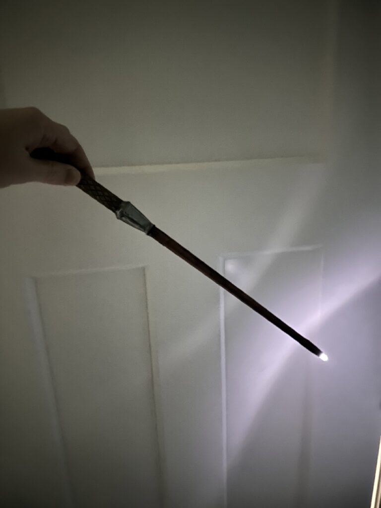 3D printed a motion-activated LED magic wand. Steampunked it with Rub ‘N’ Buff.