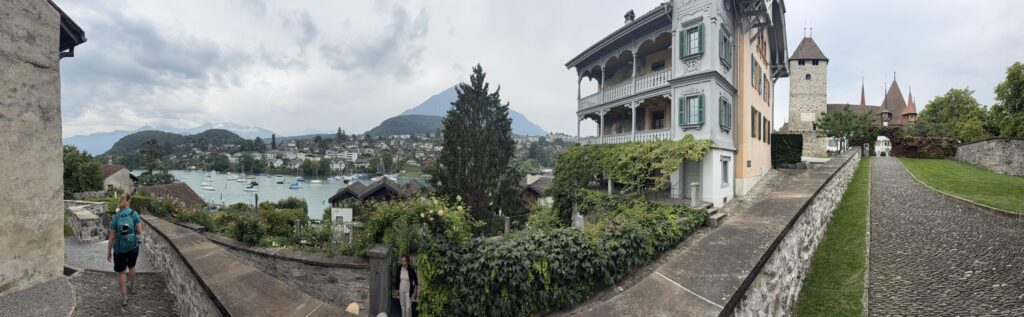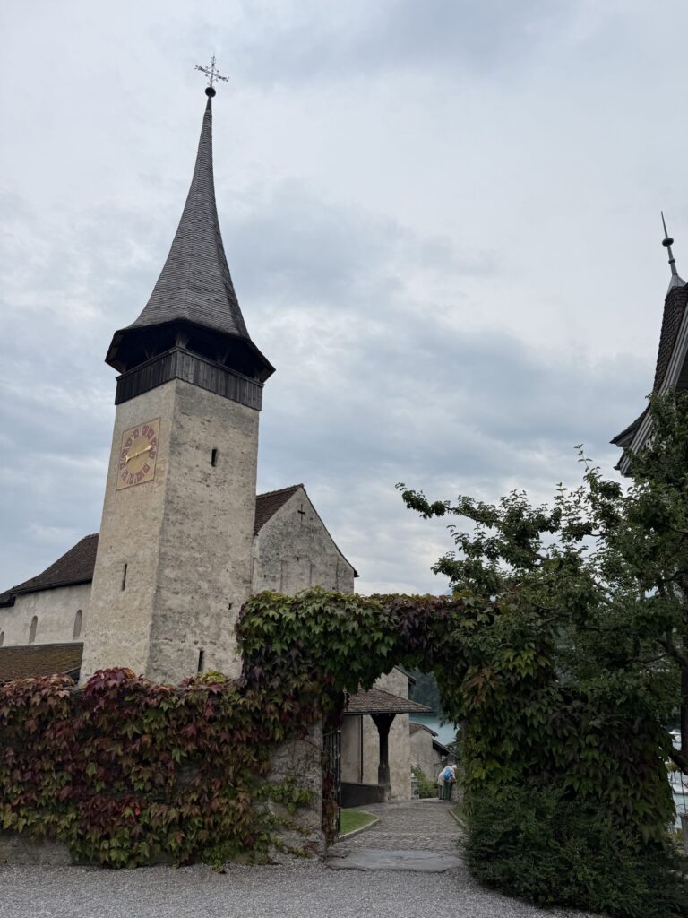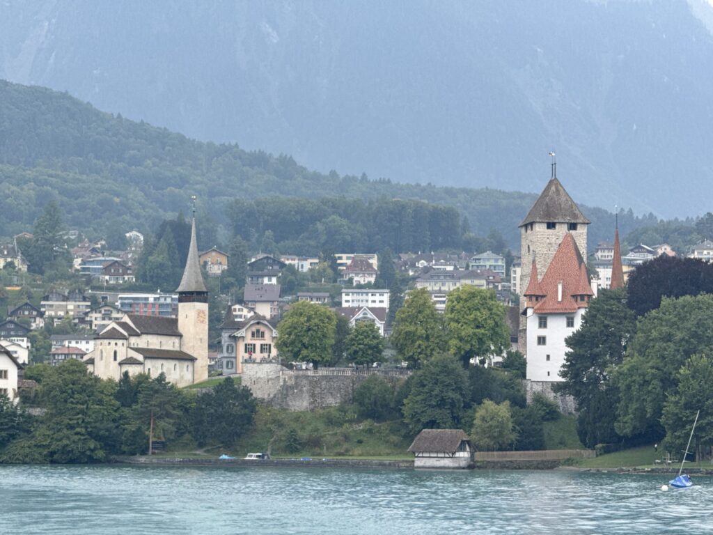 The Lake Thun ferry is one of the most relaxing and scenic ways to experience the Bernese Oberland β and itβs a great rainy-weather activity when the mountains are hidden in clouds. Departing from Spiez, the boat glides across deep blue water framed by vineyard-covered hillsides, storybook villages, and the distant peaks of the Niesen and Stockhorn mountains. Even on a gloomy day, the mist drifting over the lake adds a peaceful, moody charm. Along the route, youβll pass towns like Faulensee and Oberhofen, home to the storybook Schloss Oberhofen perched right on the water. For our visit to Schloss Oberhofen, check out our Castles, Chemistry & Capital Charm along the Lakes of Switzerland blog. The journey ends in Thun, where the castle and old town come into view β a cozy, scenic way to make the most of a gray Swiss afternoon.