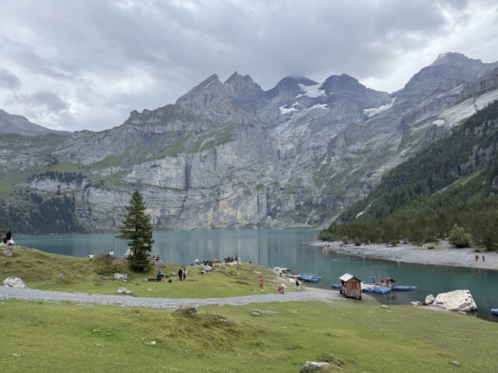 - π¦οΈ Check webcams early: Always check the live Oeschinensee webcam before departing β weather in the Alps can shift quickly, and the lakeβs signature turquoise glow fades under clouds. We built a flex day into our itinerary specifically for this hike, which paid off. Arriving early rewarded us with brilliant sunshine and crystal-clear water before clouds rolled in and rain began just as we left the lakeshore β perfect timing that made all the difference.