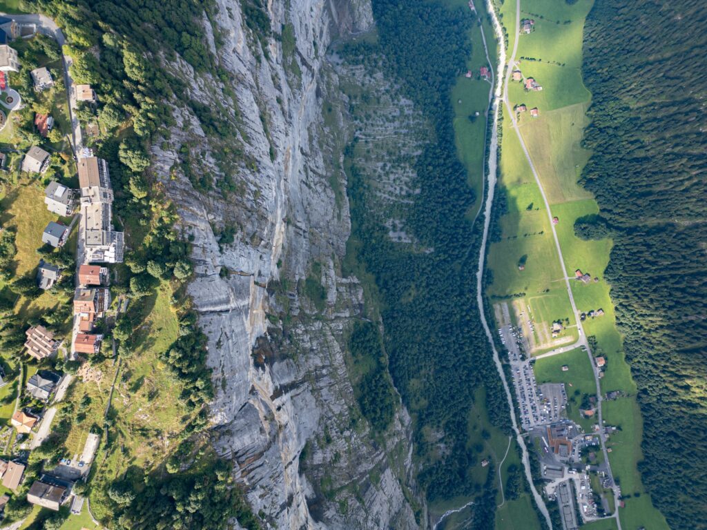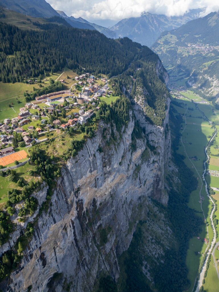 The views from Mürren are nothing short of jaw-dropping, with the mighty trio of the Eiger, Mönch, and Jungfrau towering above the Lauterbrunnen Valley. Perched high on a sunny terrace with no cars, this little alpine village feels worlds away. Scott’s drone shots captured Mürren’s charm perfectly – chalets clinging to the cliffs, flower-filled balconies, and the dramatic peaks rising like giants in every direction. It’s the kind of place where every angle looks like a postcard.