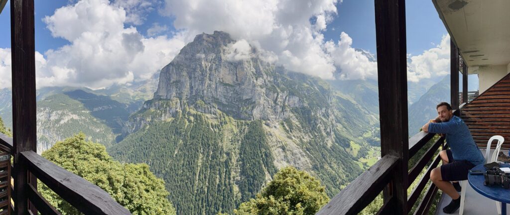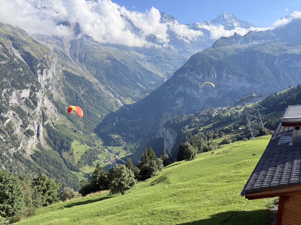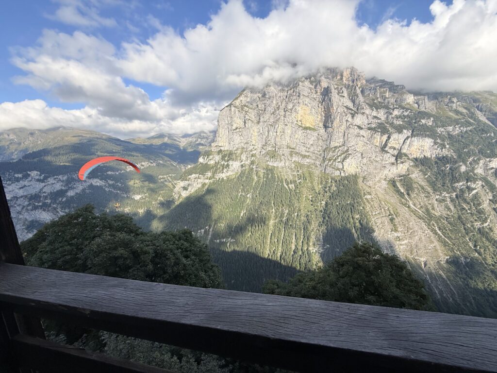 Mürren is a car-free alpine village perched high above the Lauterbrunnen Valley, and reached only by cable car and mountain railway. For four nights on our 2025 trip, we marveled at Mürren’s unreal beauty with a balcony at Hotel Alpina that opened straight onto the silhouettes of the big three – Eiger, Mönch, and Jungfrau. With its flower-lined chalets, quiet lanes, and views that stop you in your tracks, it set the stage for some of our most unforgettable adventures – tackling the thrilling via ferrata to Gimmelwald, soaring on a paraglider from Birg, hiking the Northface Trail, and riding up to the legendary Schilthorn.